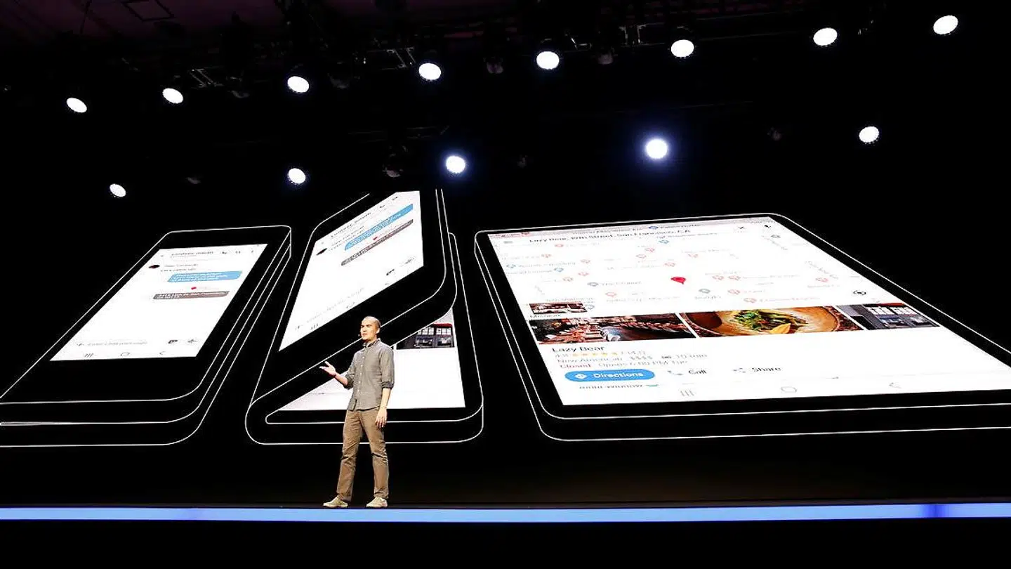 Samsungs nye telefon med en skærm, der kan foldes ud/ind, skulle komme i handelen i begyndelsen af 2019. Samsung viste en prototype af den nye smartphone i begyndelsen af november. Skærmen vil i udfoldet stand være på 7,3 tommer i næsten kvadratisk udseende men kan klappes sammen. Dermed kommer telefonen dog til at ligne en tyk telefon på størrelse med Nokias navnkundige N95.
