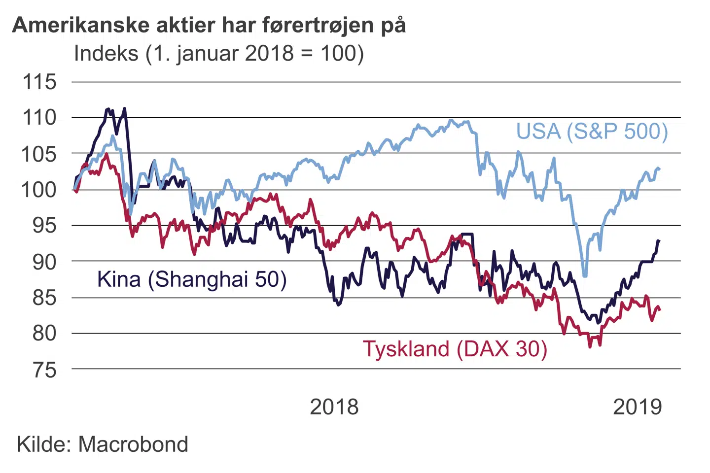 Ifølge aktiechef i Formuepleje Otto Friedrichsen har 72 pct. af de amerikanske virksomheder indtil videre overgået forventningerne til indtjeningen. Set i et historisk perspektiv er det ikke unormalt, at så mange virksomheder slår forventningerne. Men fordi de sidste måneder af 2018 var præget af stor usikkerhed om retningen for verdensøkonomien, har de »bedre-end-forventet«-regnskaber lettet investorernes bekymringer.