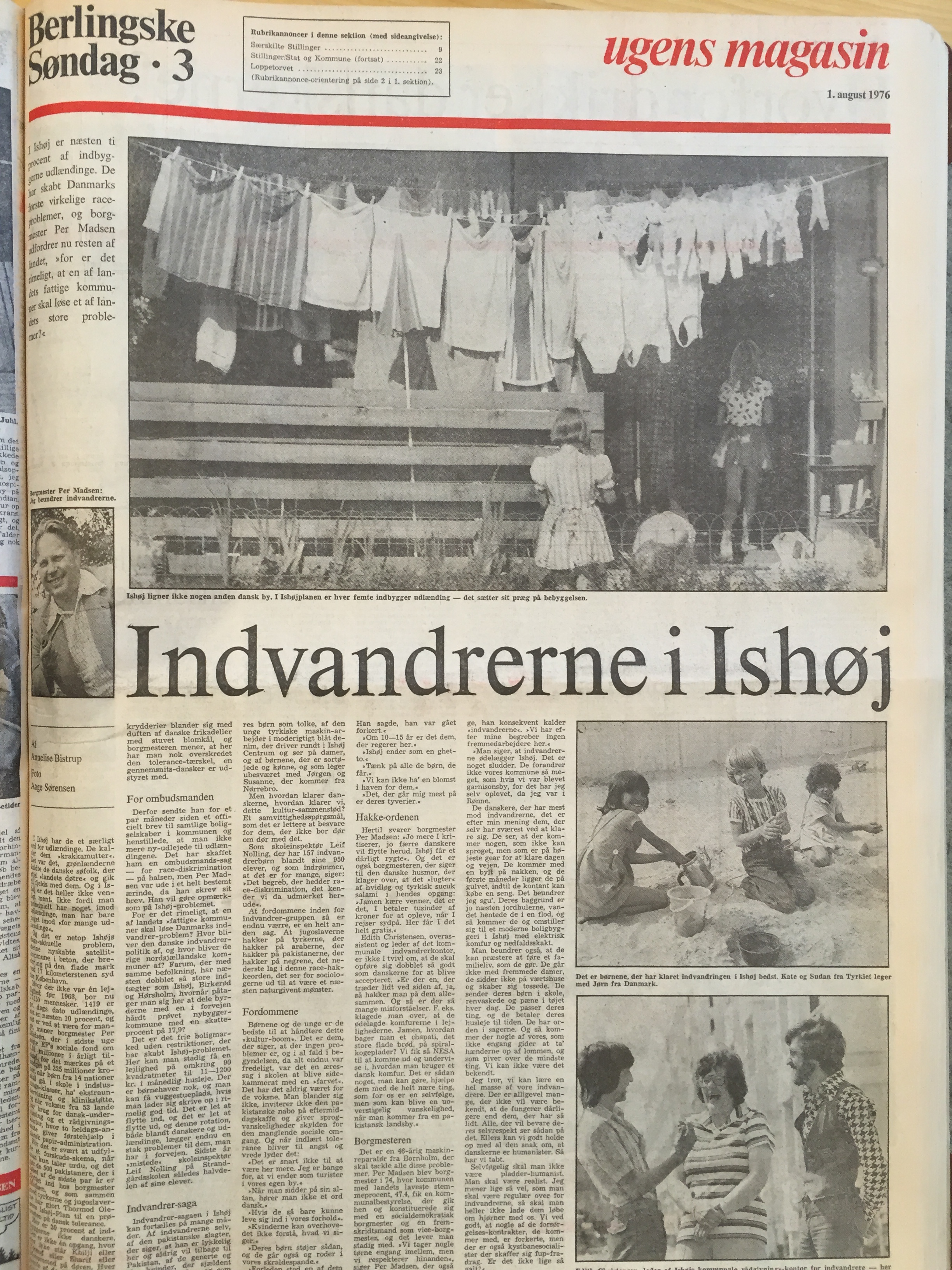 Borgmesteren Per Madsen, der for nylig gav et interview i Berlingske om, hvor ilde hans advarsler blev modtaget i 70erne og 80erne, ikke mindst i hans eget parti, Socialdemokratiet, gjorde sig her i 1976 umage med ikke på nogen måde at signalere fremmedfjendskhed. Han kaldte de nytilkomne for ”indvandrere”, ikke ”fremmedarbejdere”. Han bedyrede at Ishøj ville være blevet mere forandret, hvis den var blevet garnisonsby. Han understregede det multietniske samfunds gode sider: 70ernes danskere rejste sydpå for at få mad med hvidløg, og nu kom maden med hvidløg i stedet til dem; de fleste indvandrere opførte sig tilmed pænt og ordentligt og levede et regelret familieliv.