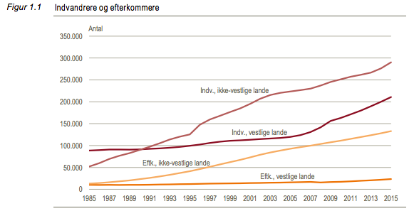 Ser man således på Danmarks Statistiks fremskrivning fra 2009 (se side 191), var forudsigelsen, at der i Danmark i år 2050 vil være 872.000 indvandrere og efterkommere i Danmark, heraf 607.000 fra ikke-vestlige lande.