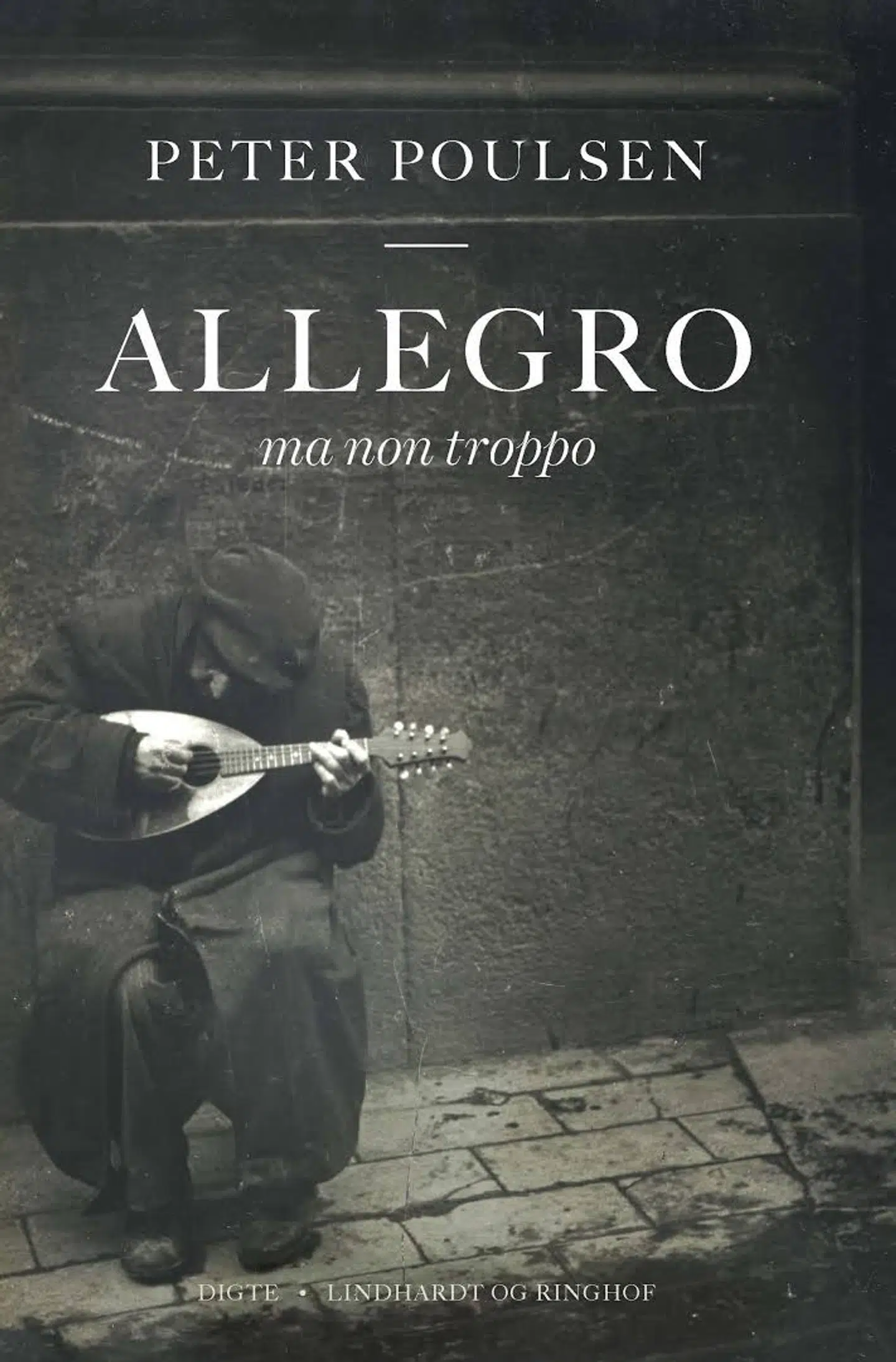 Digteren Peter Poulsen går i sin nye bog med den musikalsk iørefaldende titel »Allegro ma non troppo« på scenen som trivialiteternes sørgmuntre troubadour og registrerer med klare øjne hverdagenes eventyrlige optog af almindeligheder og stadige pendlen mellem det banale og den rene absurditet.