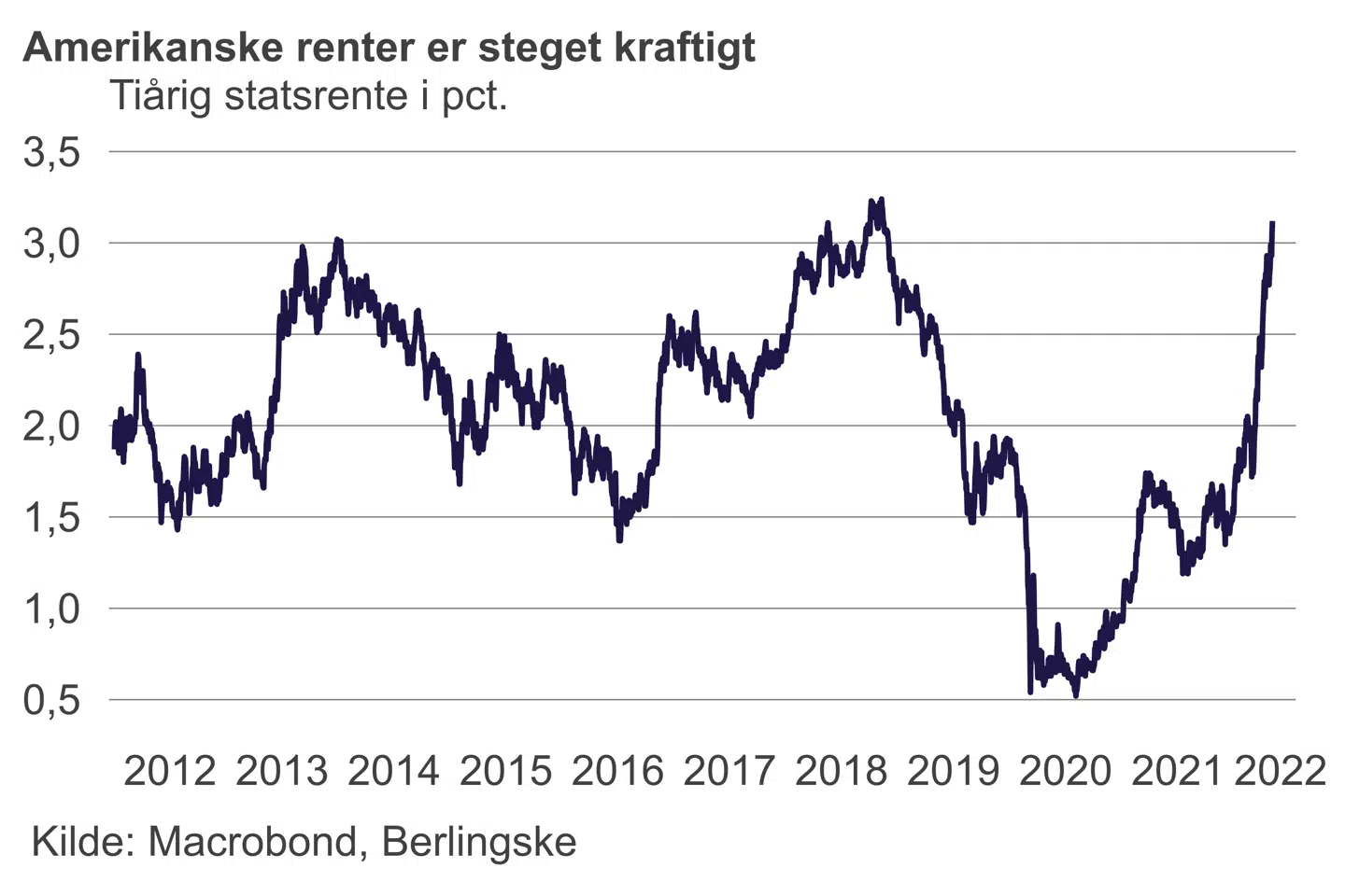 »Det er utroligt svært at navigere i det her marked i øjeblikket. Meget af rentestigningen er kommet på forventningerne om, at centralbankerne fortsætter med at stramme op, og jeg vil sige, at det ikke er usandsynligt, at renten kommer højere op,« siger han.