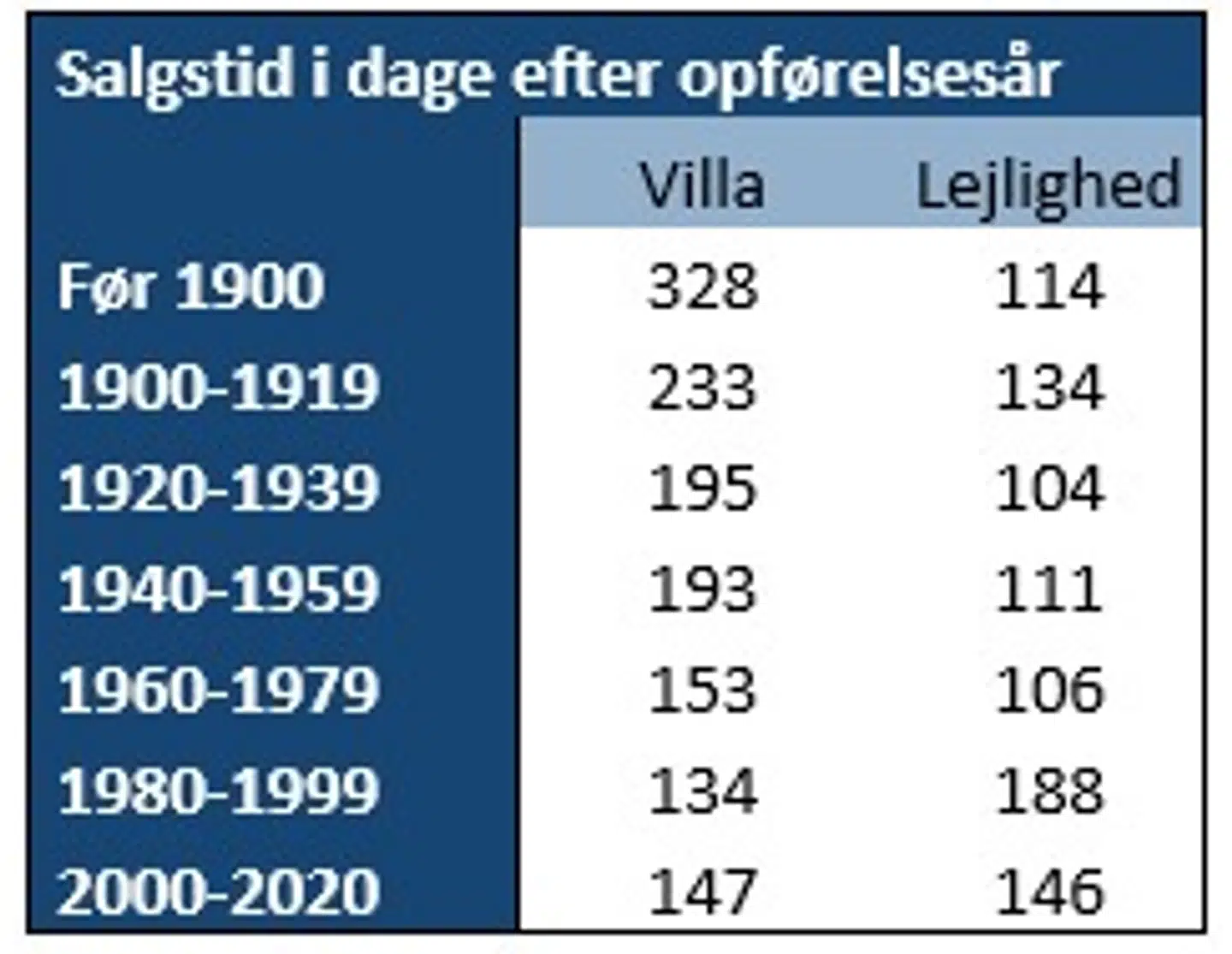 For lejlighedernes vedkommende ses de hurtigste salg på lejligheder i ejendomme fra 20erne og 30erne. Salgstiden stiger markant for lejligheder i nyere ejendomme, og det tilskriver Jan Normann beliggenheden. Ældre ejendomme ligger typisk centralt i de store byer, hvor der er den største efterspørgsel og dermed korteste salgstider.