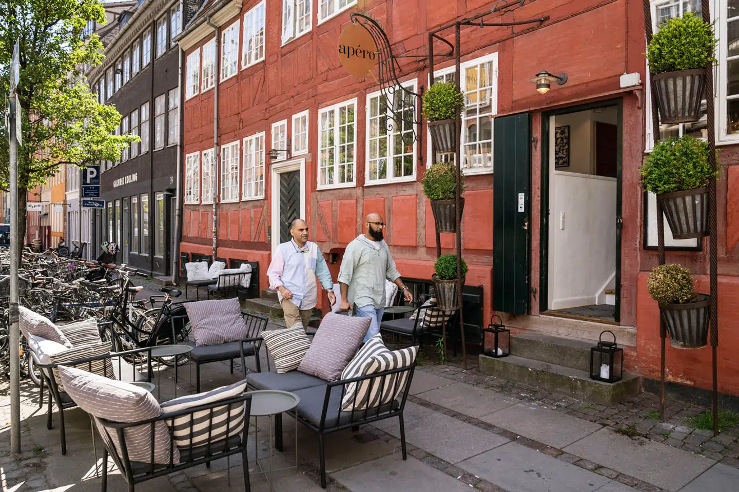Apéro, som man finder i Restaurant Gl. Mønts gamle lokaler, er en af byens få rigtige »voksenvinbarer«. Forstået på den måde, at man her må kigge langt efter skramlet interiør og studentervenlige priser. Her er intet tilfældigt, møblementet er signeret Finn Juhl, tjenerne er fuldblodssommelierer, og barkøkkenet er pimpet op med kaviar og trøfler.