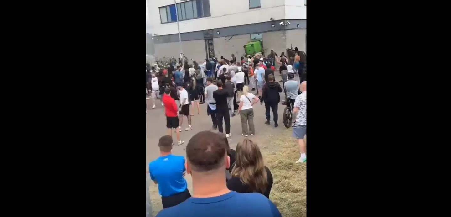 Det skete i forbindelse med et brandattentat på Holiday Inn Express - et hotel, der rummer asylansøgere.