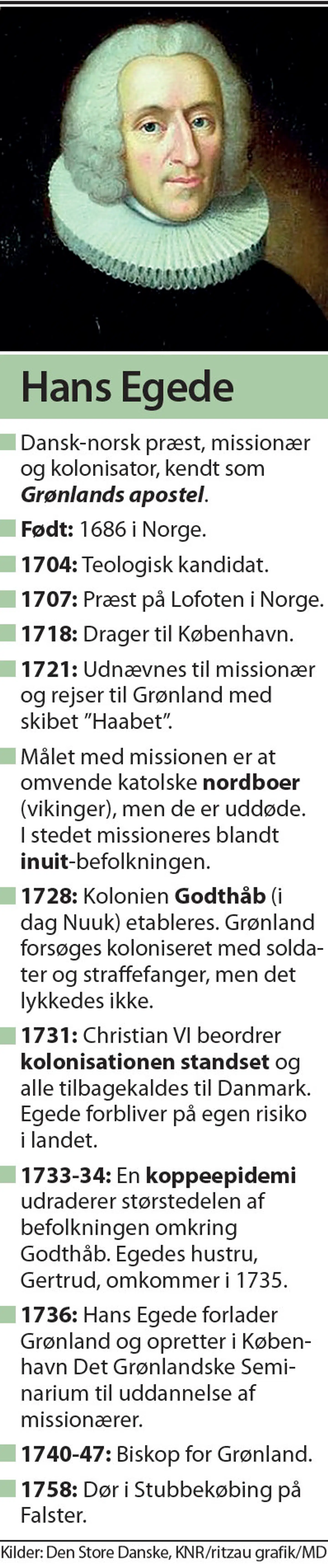 Hans Egede levede fra 1686 til 1758.