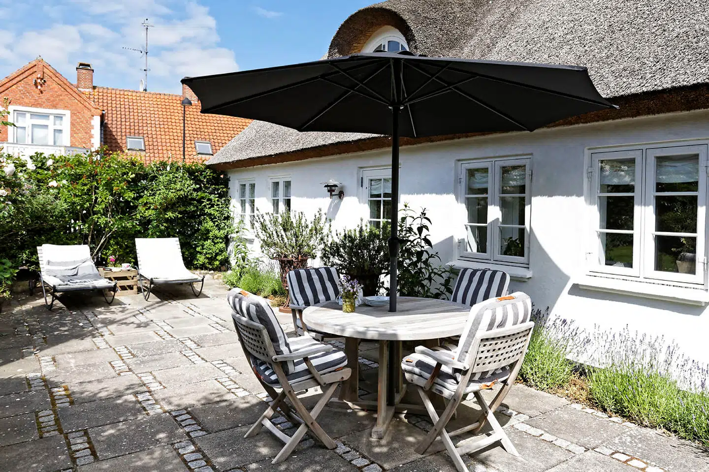 »Ja, det er et hyggeligt miljø, hvor vi har fået mange kontakter. Vi lægger vægt på at bruge lokale håndværkere og småentreprenører, når vi skal have noget lavet i hus og have. For eksempel skulle der store maskiner til for at omdanne en tidligere mødding og ridebane til en del af haven. Og en træterrasse vest for huset, som skulle erstatte en ottekantet pavillon, som tog lys fra stuen, er også udført af en lokal tømrer. Stedet er en reminiscens af et gammelt landbosamfund. Her bor folk, som kan noget med deres hænder og ikke bare er teoretikere.«