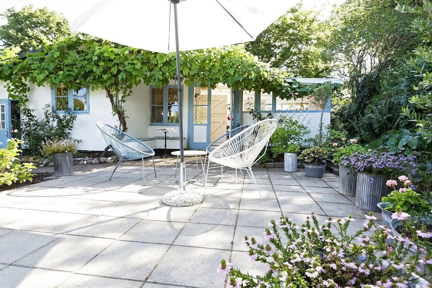 »Ja, natur og have er kommet til at betyde og fylde mere for os. Vi læser stadig bøger, men ikke kun det! Vi har ikke behov for at benytte en masse kultur (i København, red.). Man kan sige, at vores interesser er blevet mere konkrete og håndgribelige med huset, at dyrke haven, tage os af vores tre hunde og være flyttet tilbage til et område, hvor vi er tæt på familie og venner. Efter at have fået sat huset i stand og indrettet det, har vi fået overskud til at tage os af bygningens ydre. Det er både den store grund, der ligger spredt i flere sektioner på området, og de mange længer, vi skal finde kreative formål til. I en af de tidligere stalde har vi for eksempel salg af blomster, vi selv dyrker.«