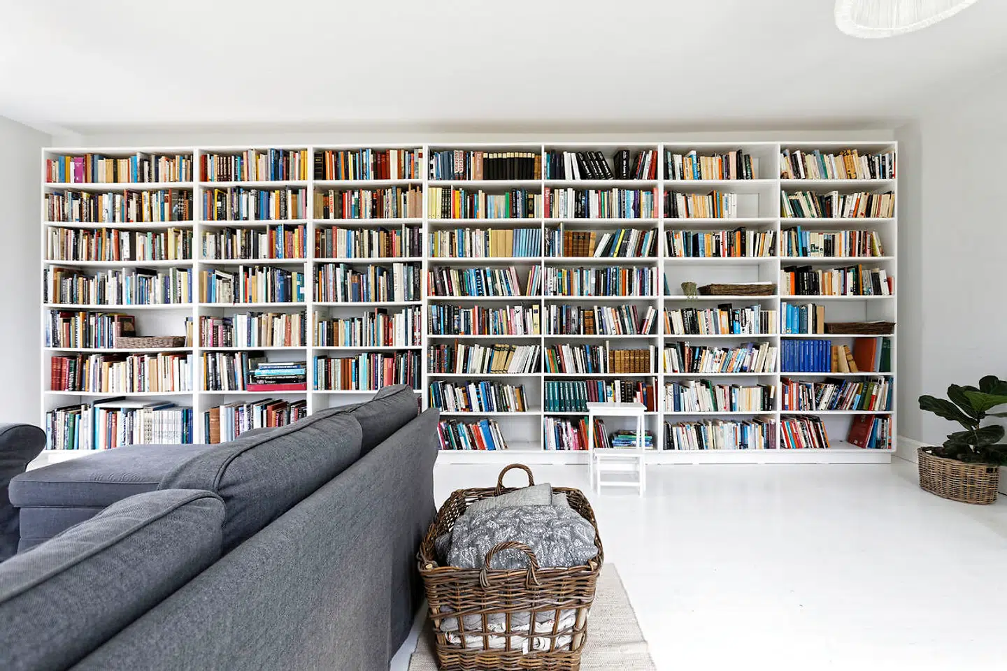 Vi bor mere spartansk nu og er gennem årene gået fra det tungere til det lettere. Generelt har vi sorteret og forenklet i blandt andet vores mange bøger, da vi flyttede ind her. Det gik især ud over lærebøger, og vi har da stadig nogle store reoler, som dækker stuens vægge. Møbelarkitekter går vi ikke op i, men mere en lys og nordisk stil generelt. Vi har en PH-lysekrone og et par pastelfarvede Y-stole, men ellers ingen designermøbler.«