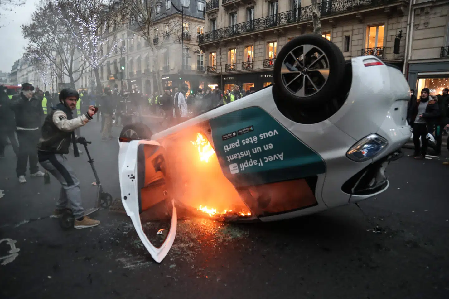 Braget, der smadrede vinduer, væltede biler og kvæstede flere mennesker, kunne høres i store dele af det centrale Paris.