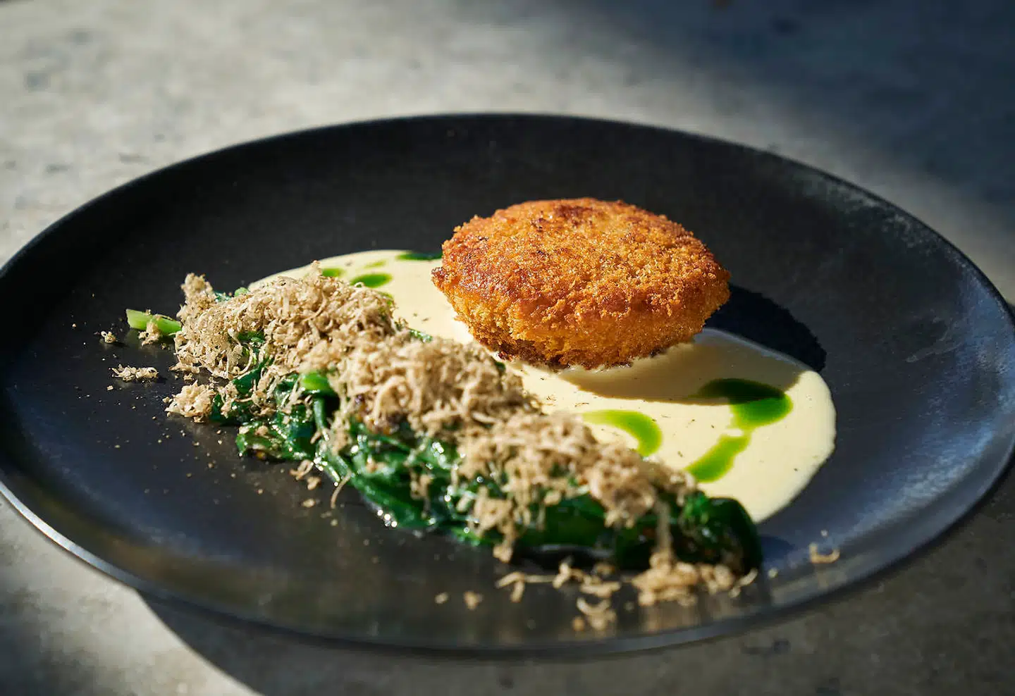 Krebinet med spinat, sommertrøffel og velouté. Niels Ahlmann Olesen