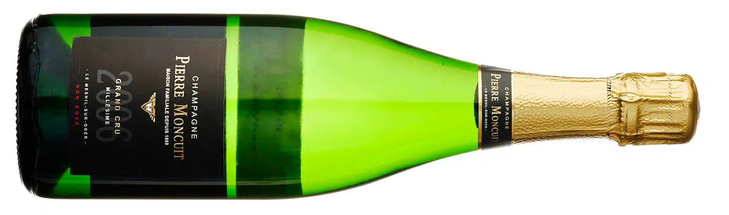 Moncuit har 15 hektar i Mesnil, hvor familien laver blanc de blancs. 2006 non dosé er ganske udviklet med noter af harsk smør, flødekaramel, kvæde og mødding. Munden byder stadig på frisk syre og lav (ingen) dosage og en eftersmag af jord og kalk.