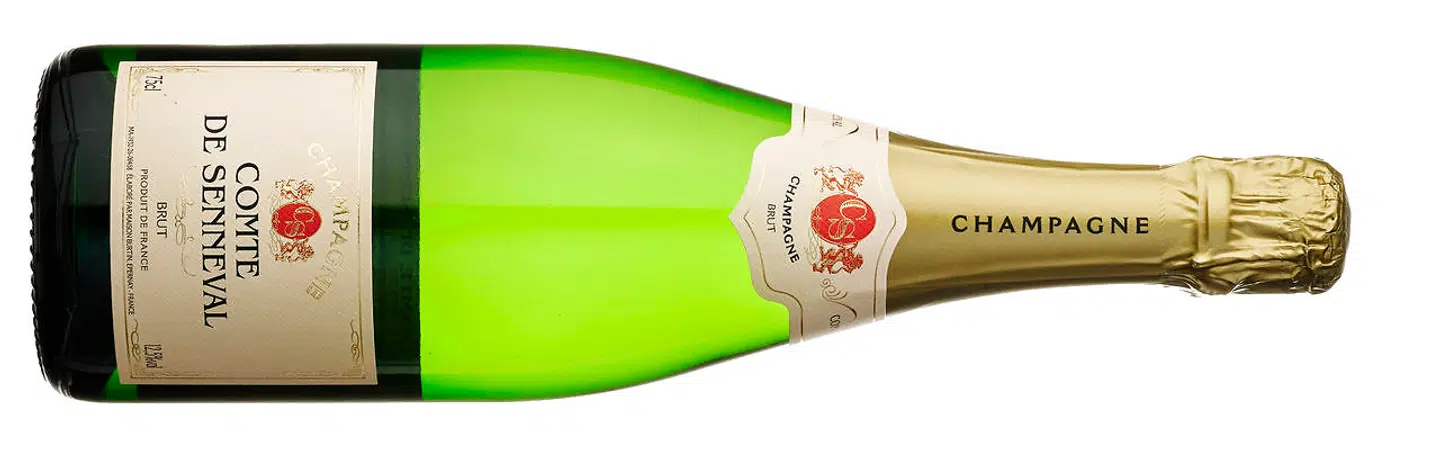 Der findes masser af både dyr og billig champagne, men der er trods alt en grænse for, hvor billig champagne kan blive, eftersom prisen på druer i Champagne er højere end noget andet sted i verden. Således testede jeg i fjor Lidl’s Comte de Brismand til 99 kr., som skrabede bunden med en smag af gammelt blomstervand og pissoirkugler. I går stiller discountkæden op med den en anelse bedre Comte de Senneval til 149 kr.. Den smager mere som en billig prosecco, som livet efter min mening er alt for kort til at drikke.