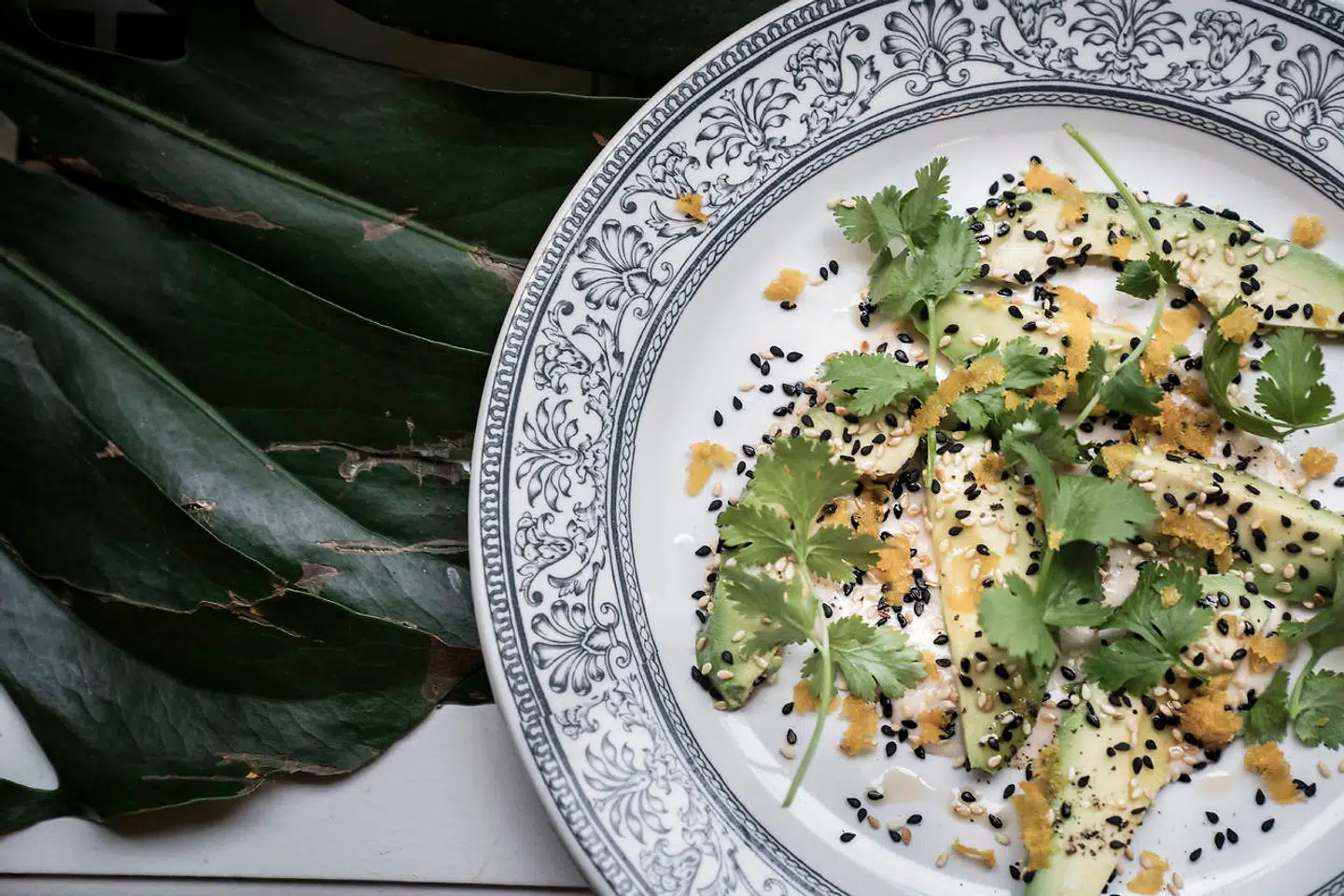 En forårsrulle fyldt med rejer, forårsløg og shiitakesvampe lå på et grønt »stilke«-mønster af avocadocreme, smagt til med den japanske citrusfrugt yuzu. Rullen var frisk og fuldstændig fri for frituresmag og var desuden toppet med spæde rødbedeblade og så dét, der for alvor skilte Kinome ud: sort trøffelpuré belagt med spiseligt bladguld!