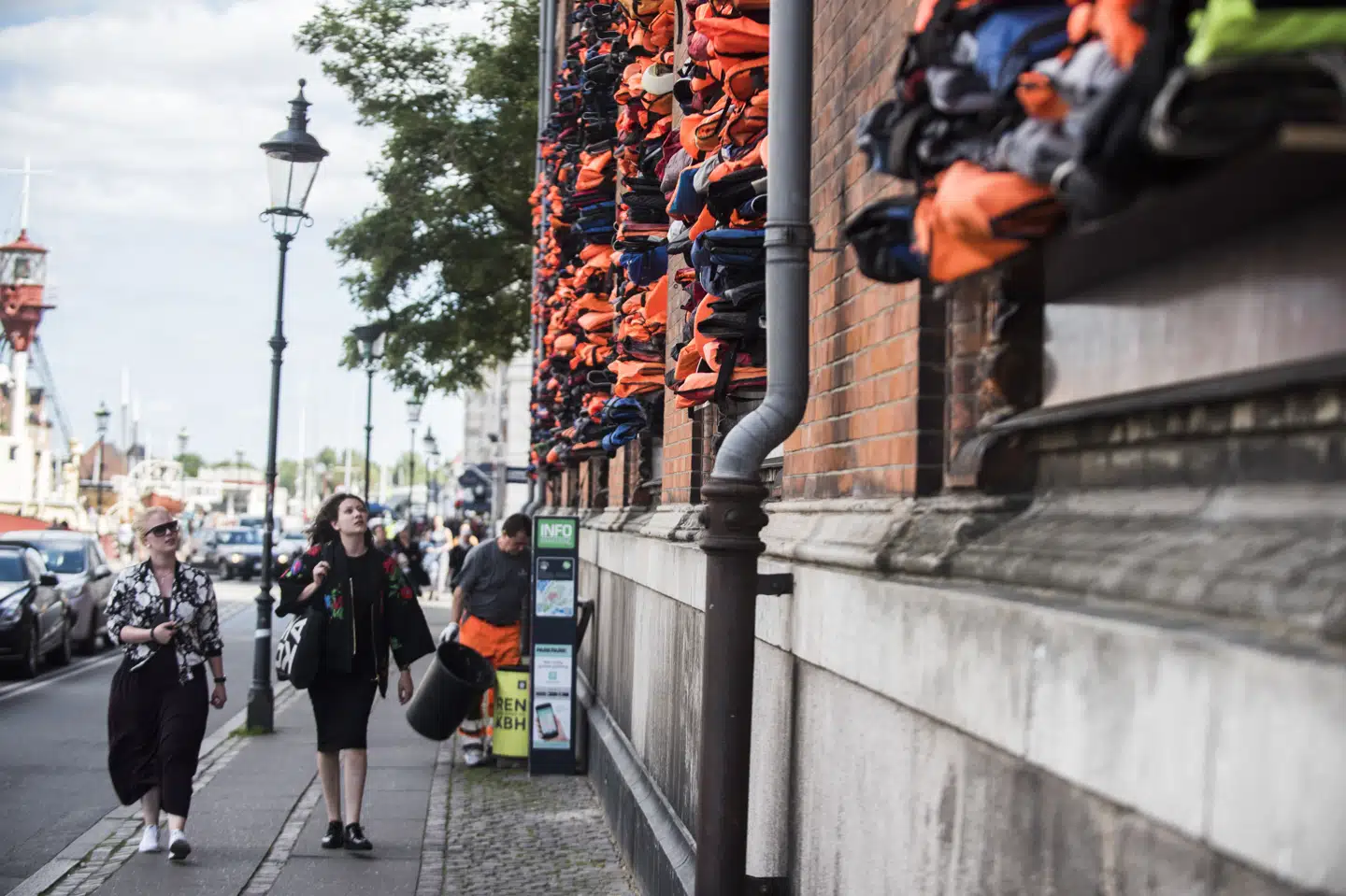 Men den ansatte overså det, der var grunden til facadens farve. Et kunstværk med 3500 redningsveste på Kunsthal Charlottenborg i København.