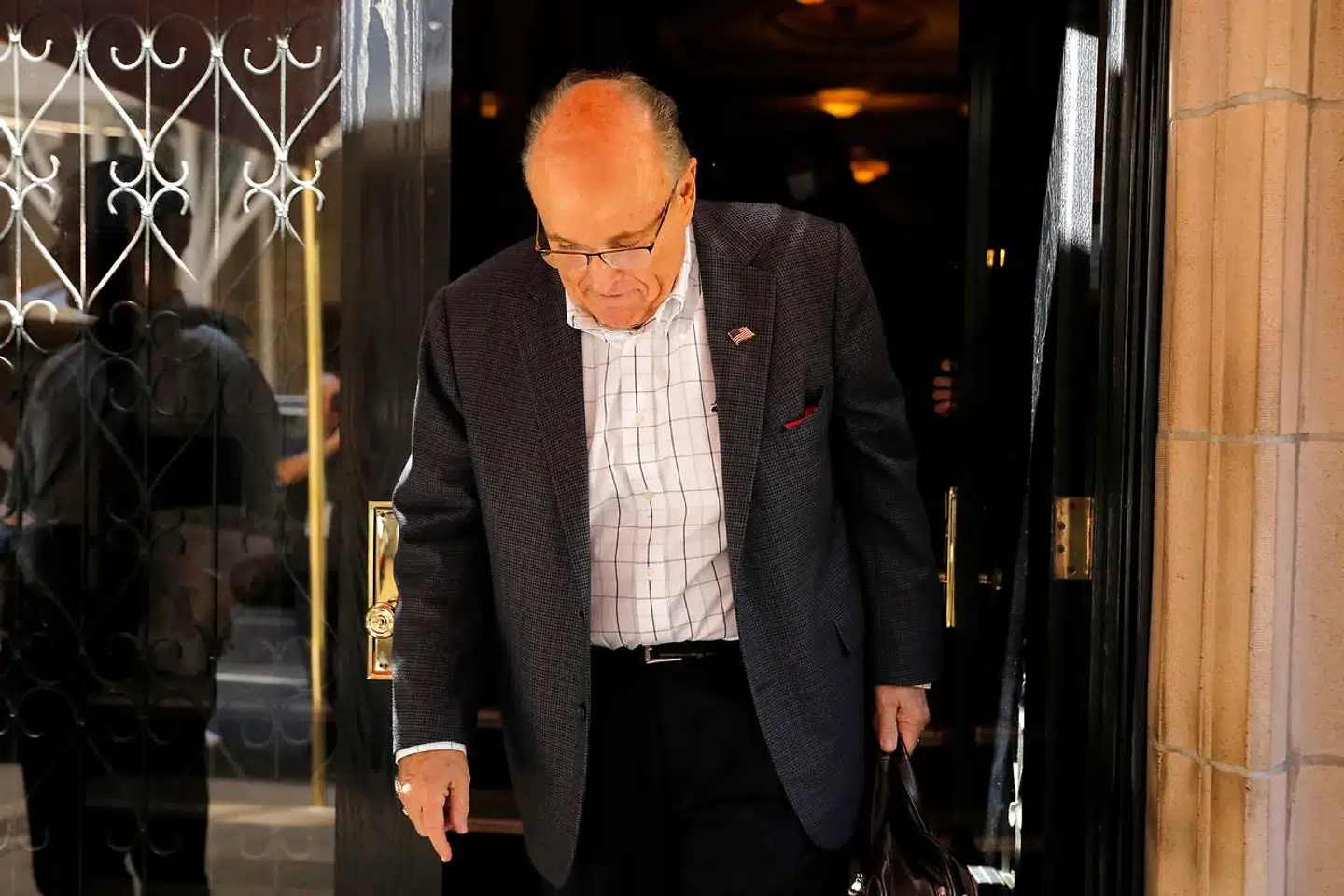 Optagelser fra stedet viser, at robotten smadrer en dør ind til rådhuset.