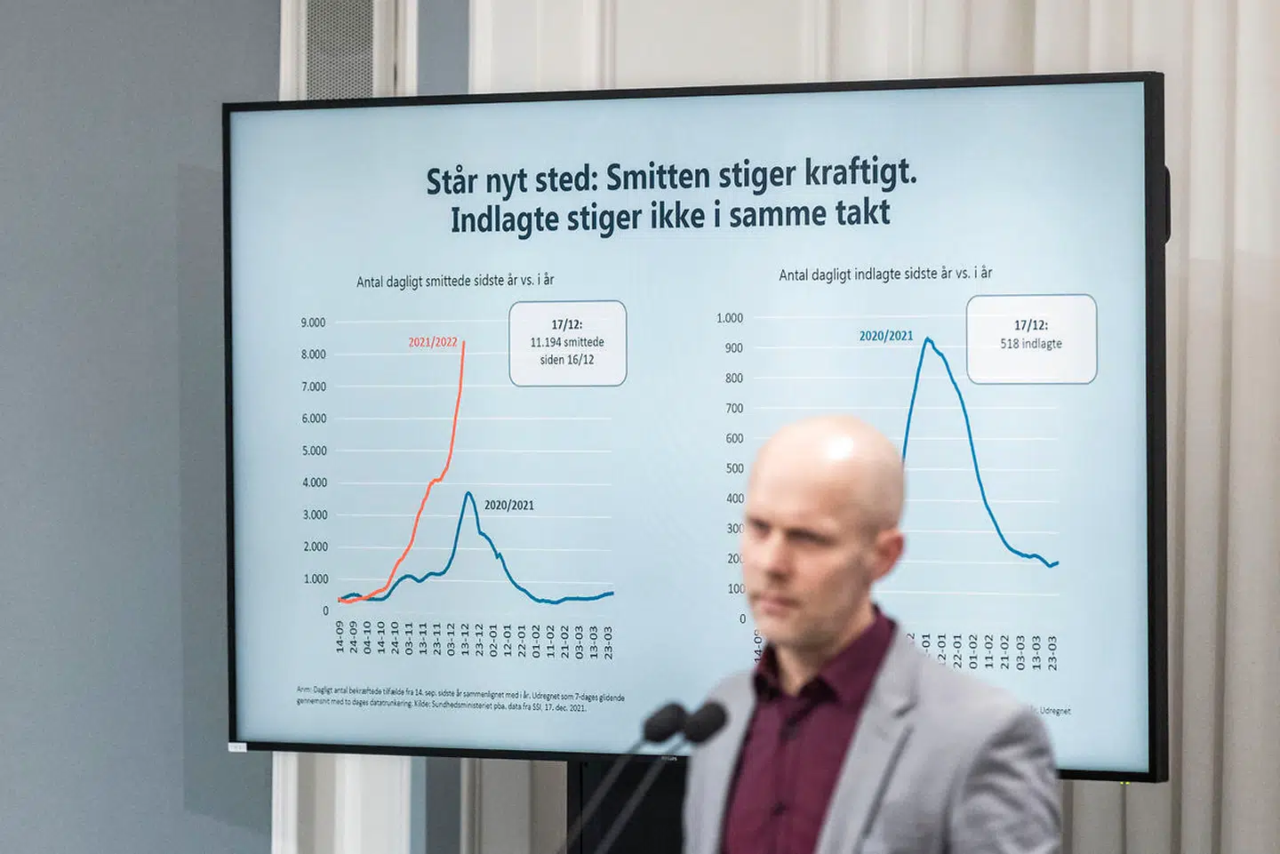 »Vi kan jo se, at studier fra Sydafrika også indikerer, at omikron kan være mindre farlig for den enkelte, men stadig er mere smittefarlig. Problemet er, at hvis der er tre gange så mange, der bliver smittet med omikron, så kan indlæggelsestallet blive det samme.«