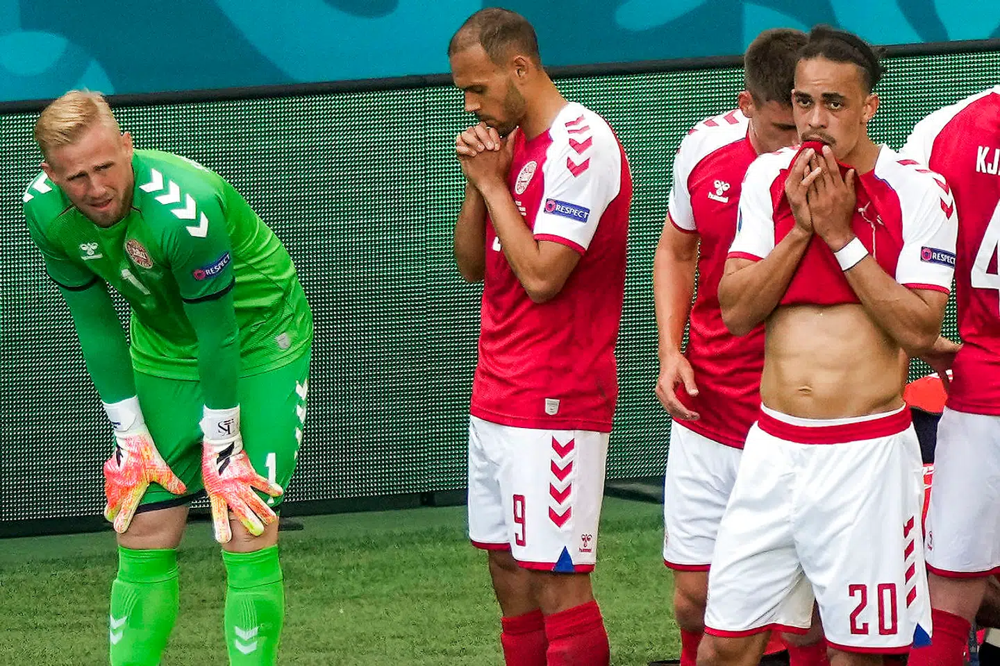 Landsholdsspillerne i ring om deres faldne ven. Der stod de på vores vegne og gjorde det eneste, de kunne, at skærme Christian Eriksen i det mest private øjeblik i hans liv, mens de stillede deres egen sårbarhed til skue med blanke øjne og blikke, der søgte væk fra kameraernes nådesløse offentlighed. De ofrede sig selv, deres egen facade, kontrollen, vi hver især har med vores fremtoning i verden, og lod os se deres inderste i de alt for mange minutter, hvor vi var på herrens mark, og kun håbet var tilbage.