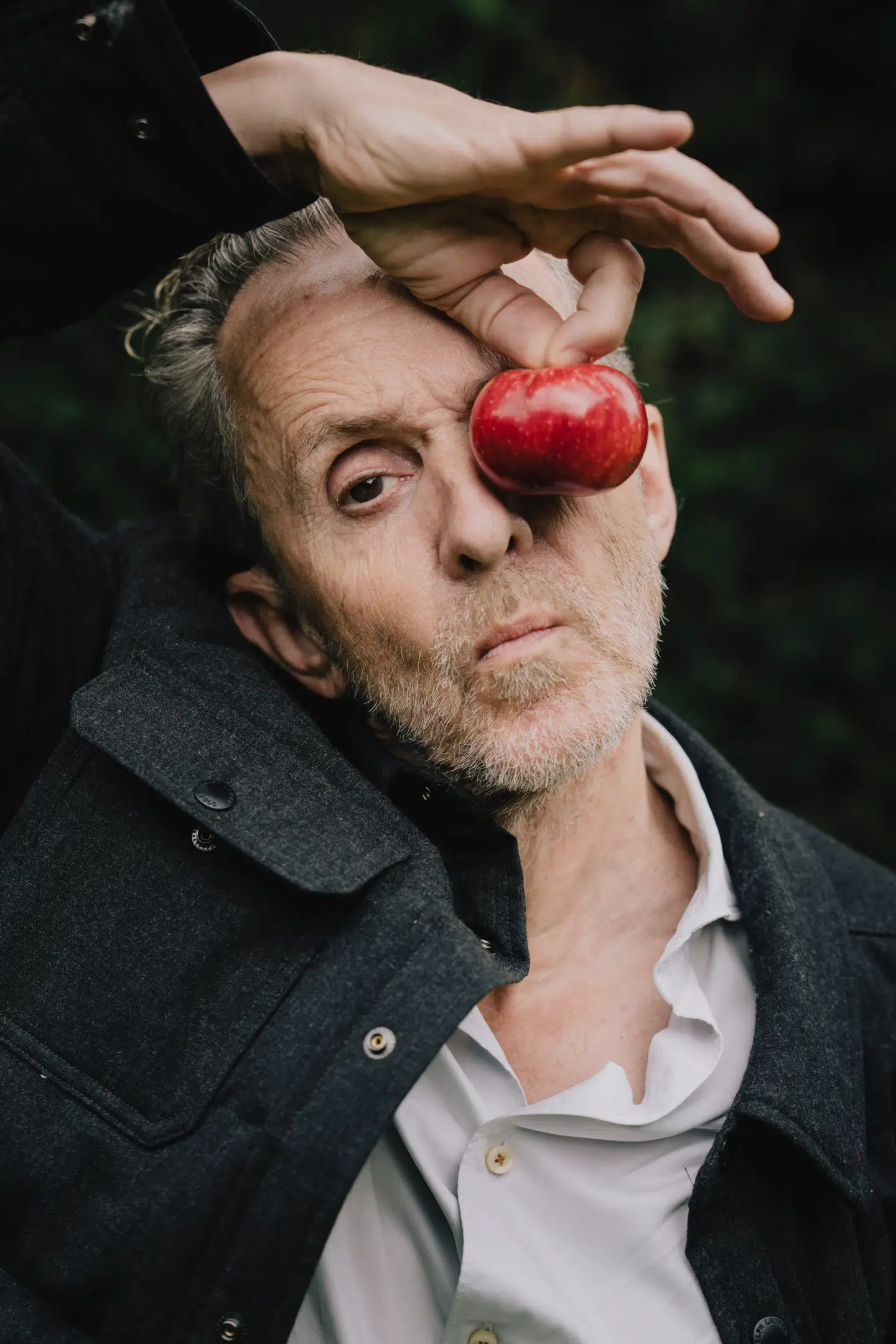 Og derfor kom jeg til at tænke på et portræt af Lasse Dein med en blomst for det ene øje. Kunne man gøre noget lignende med ét af kantinens æbler?