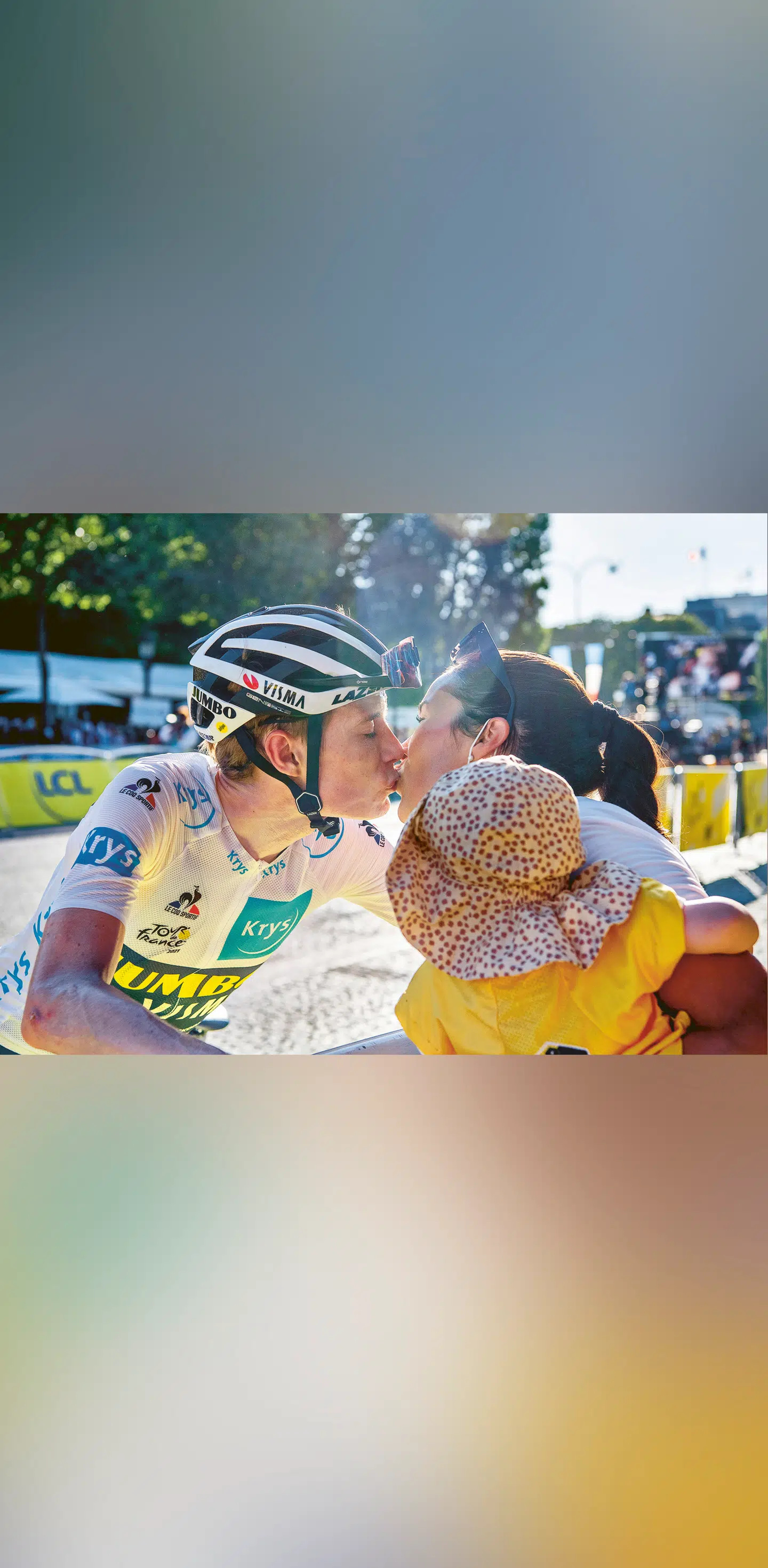 2021. 21. etape til Paris Champs Élysées. Jonas Vingegaard med kæresten Trine og datteren Frida.