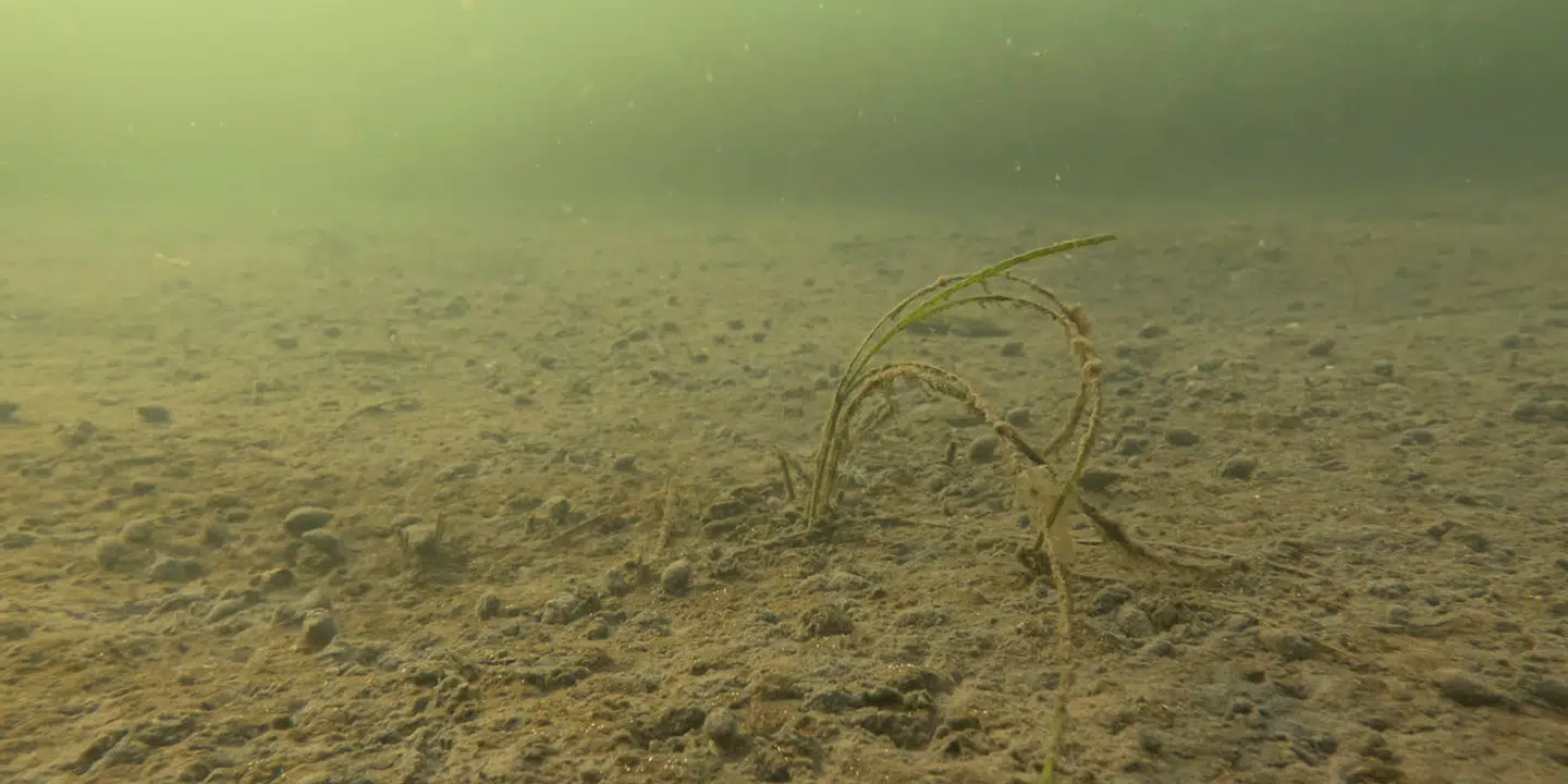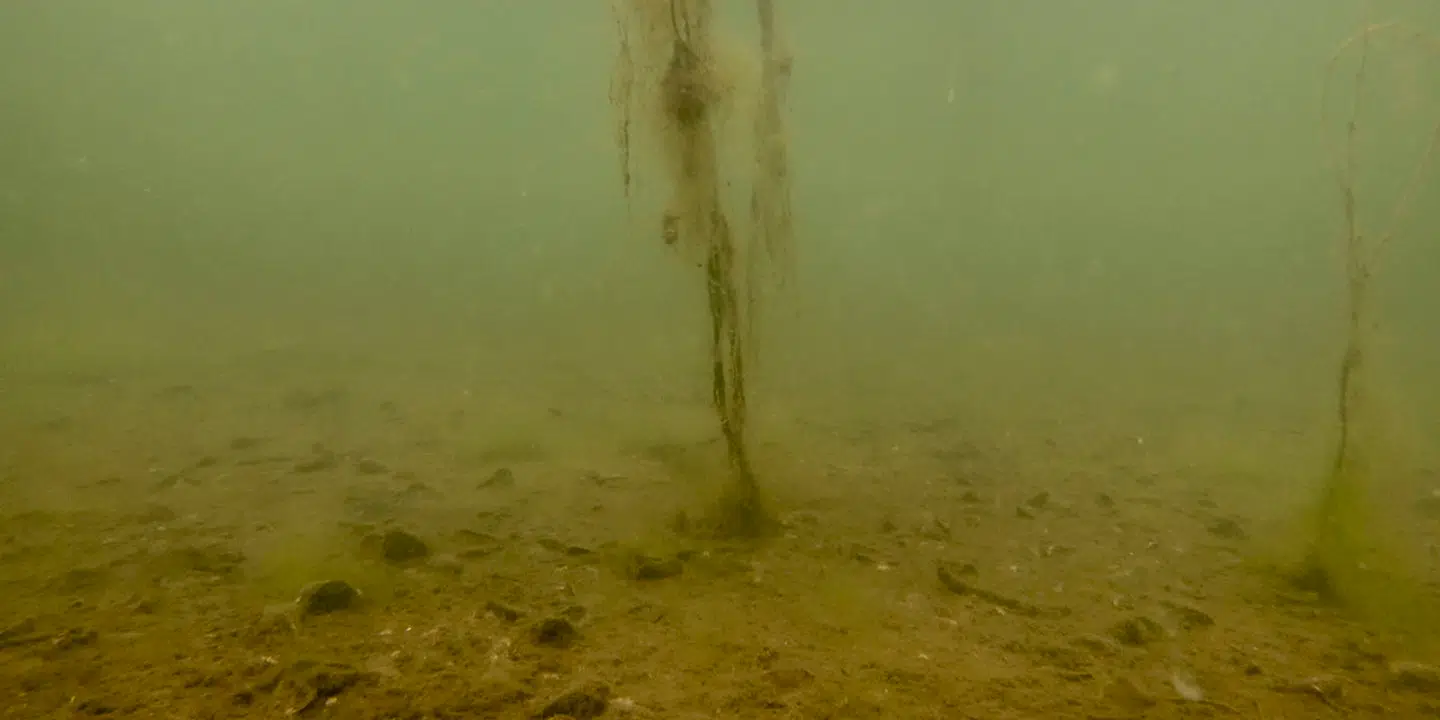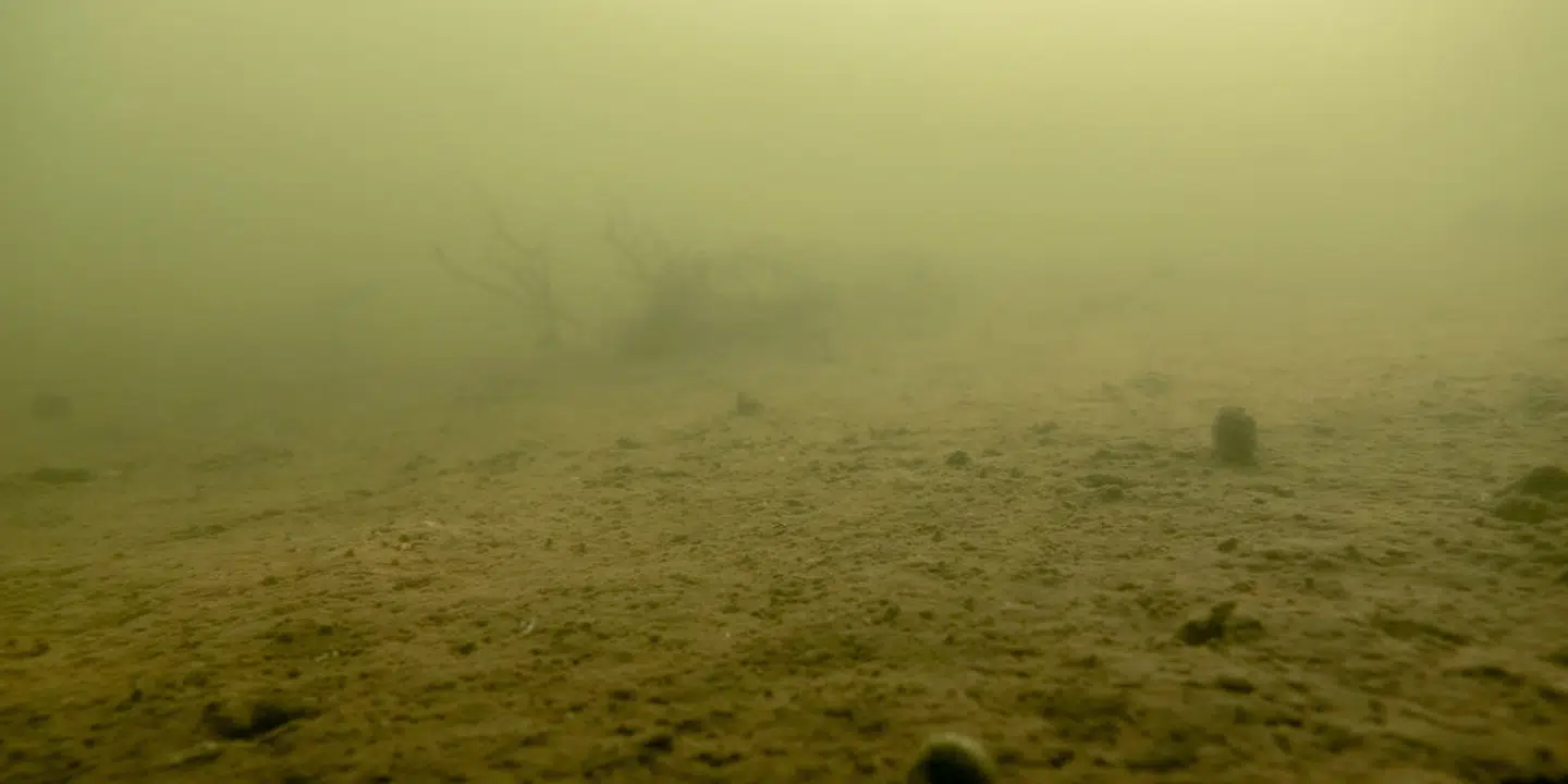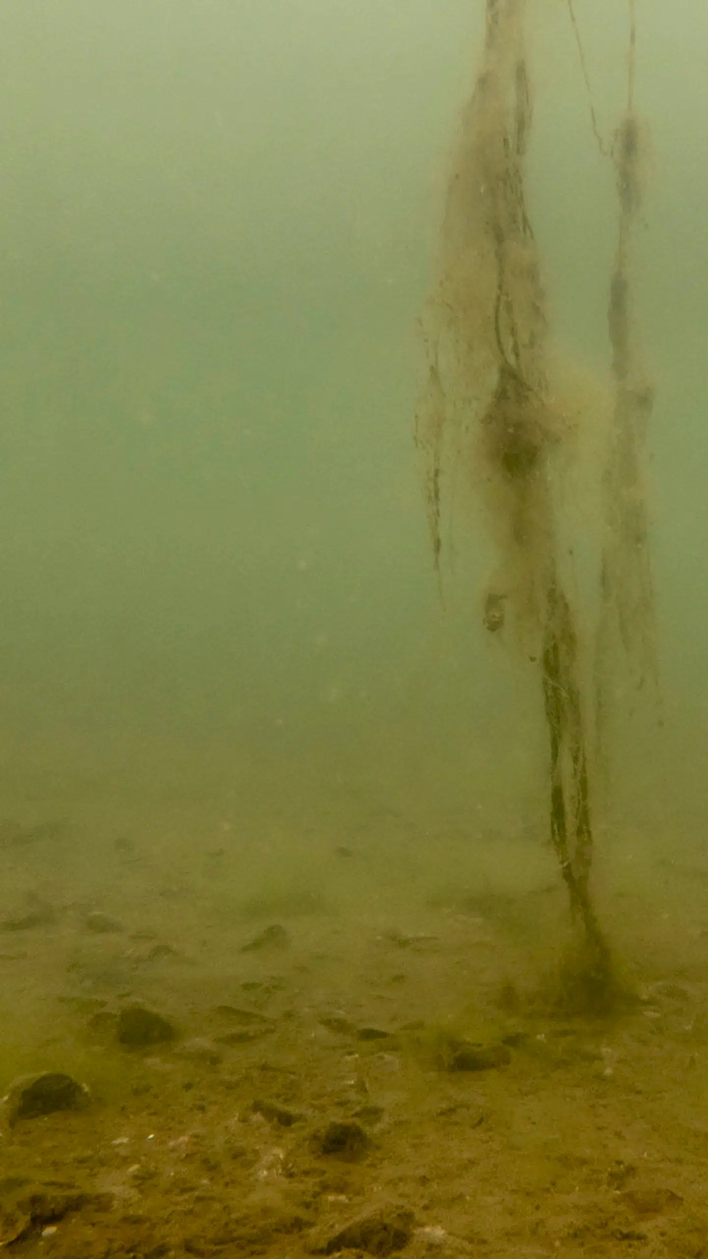Resultatet er iltsvind. Og vi så det overalt, da vi 15 gange over et år dykkede ned i de indre danske farvande. Som her i Kalø Vig ved Aarhus.