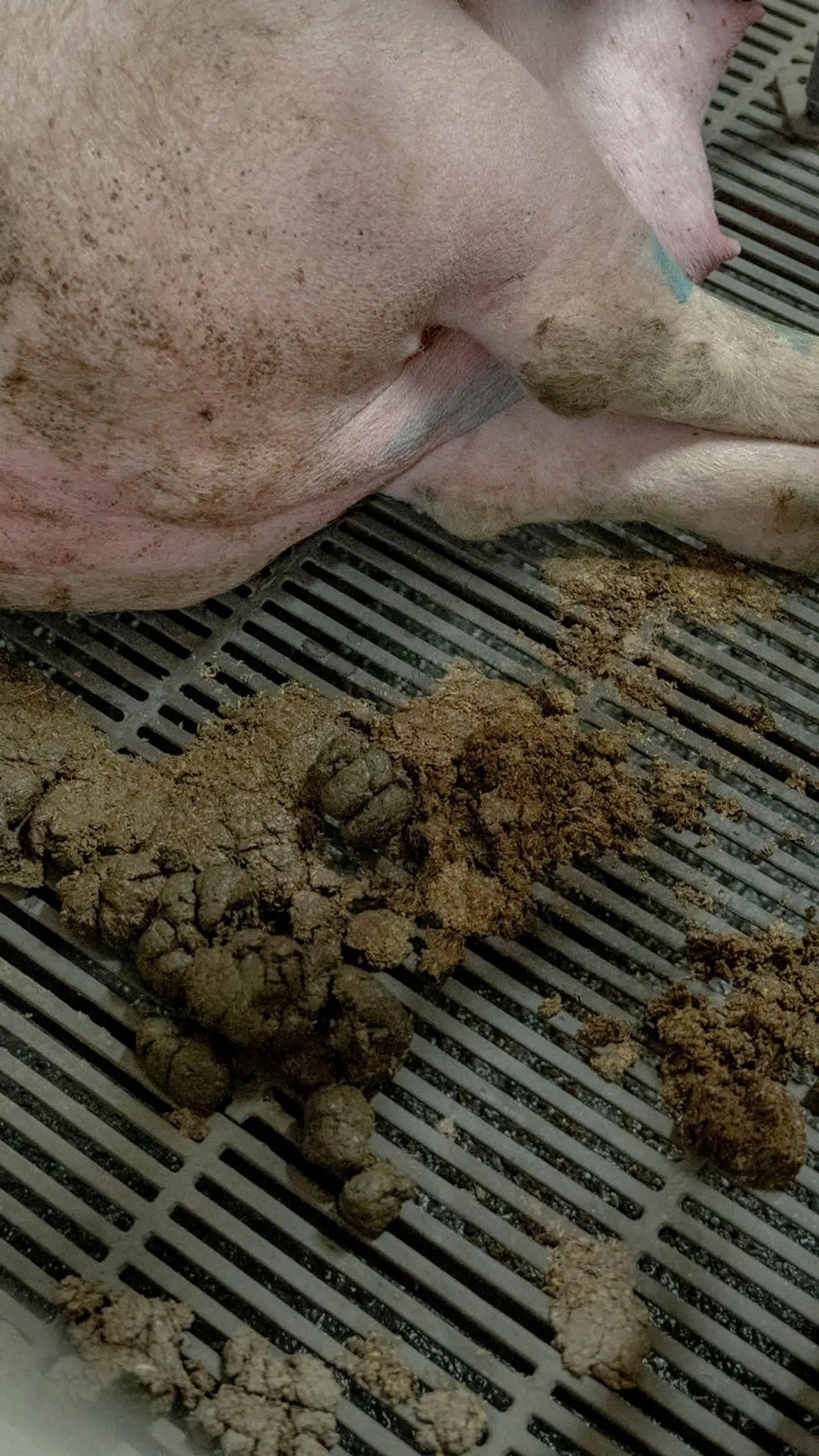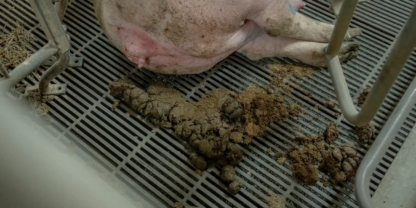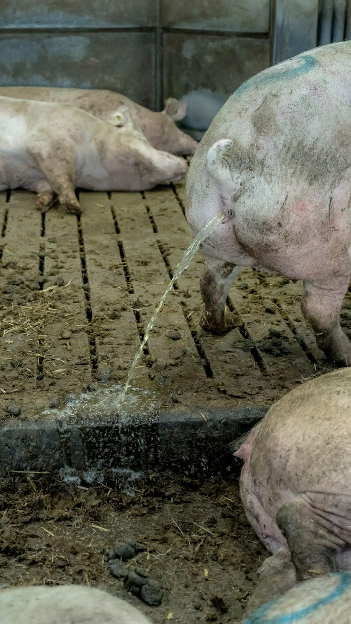 Afføringen fra grisen 2391 ender i gylletanken uden for stalden.