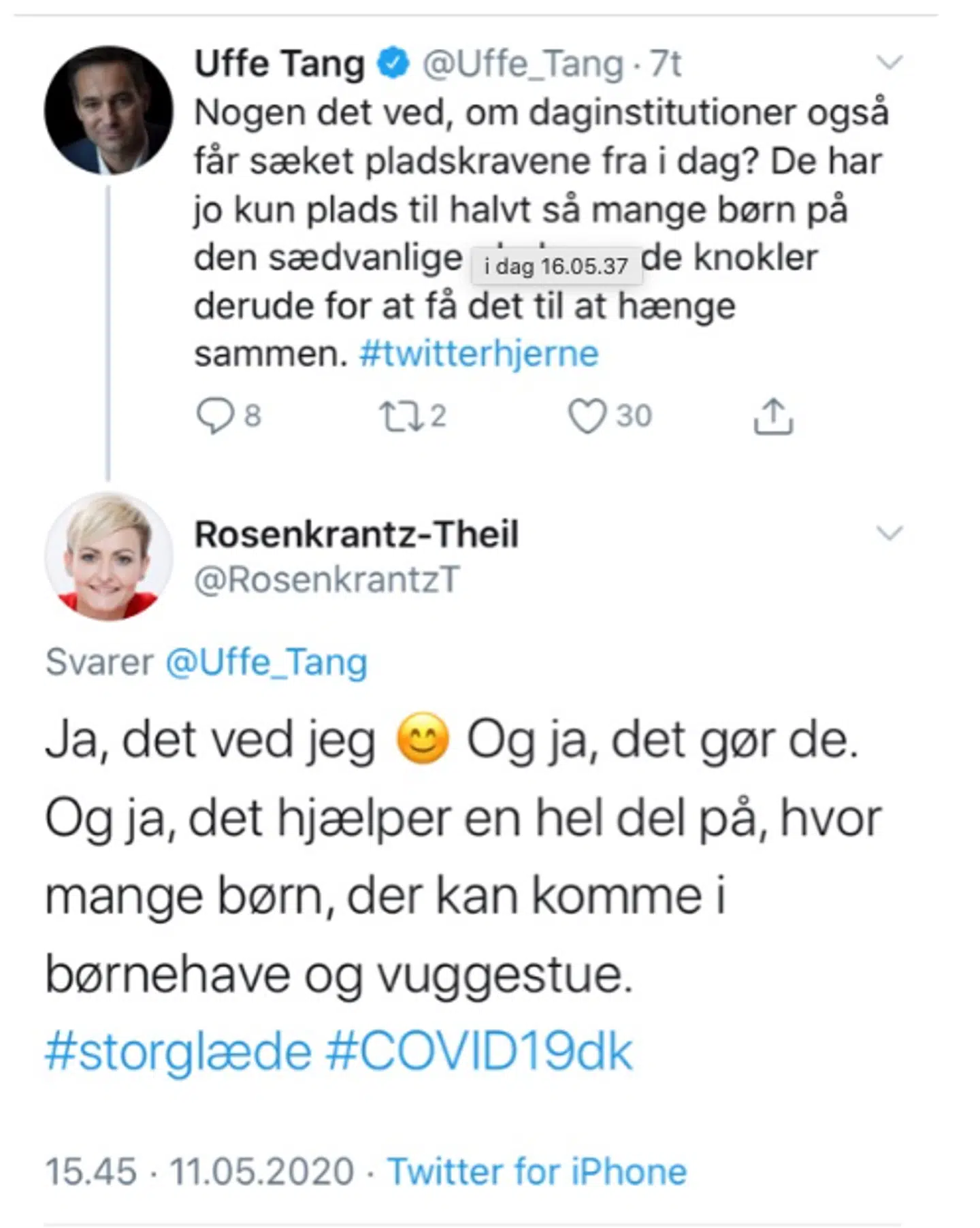 »Det hjælper en hel del på, hvor mange børn, der kan komme i børnehave og vuggestue,« skrev ministeren.