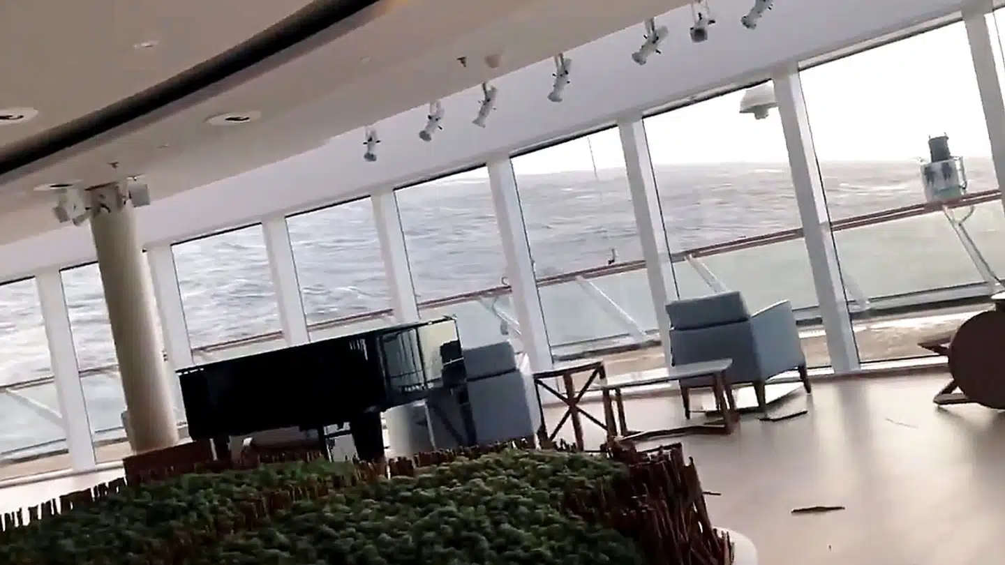 Krydstogtskibet mistede motorkraft i et voldsomt uvejr med 1373 personer om bord. Det var faretruende tæt på at støde mod grund.