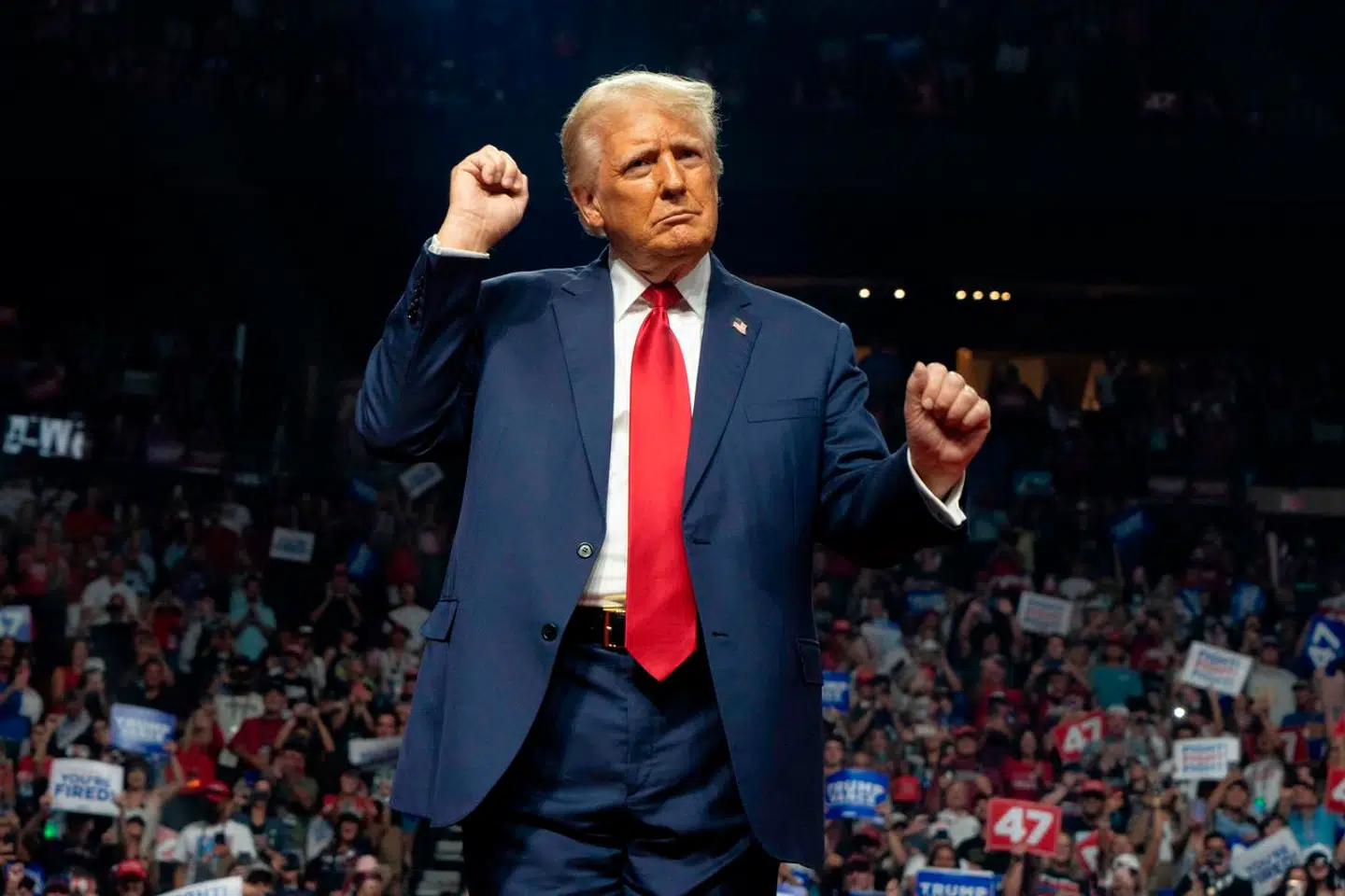 Den demokratiske præsidentkandidat forlod sin bil og skridtede straks i retning af trappen til flyet, og undervejs nåede hun kun en hurtig hilsen og et flygtigt vink i retning af der, hvor blandt andre repræsentanter fra pressen stod.