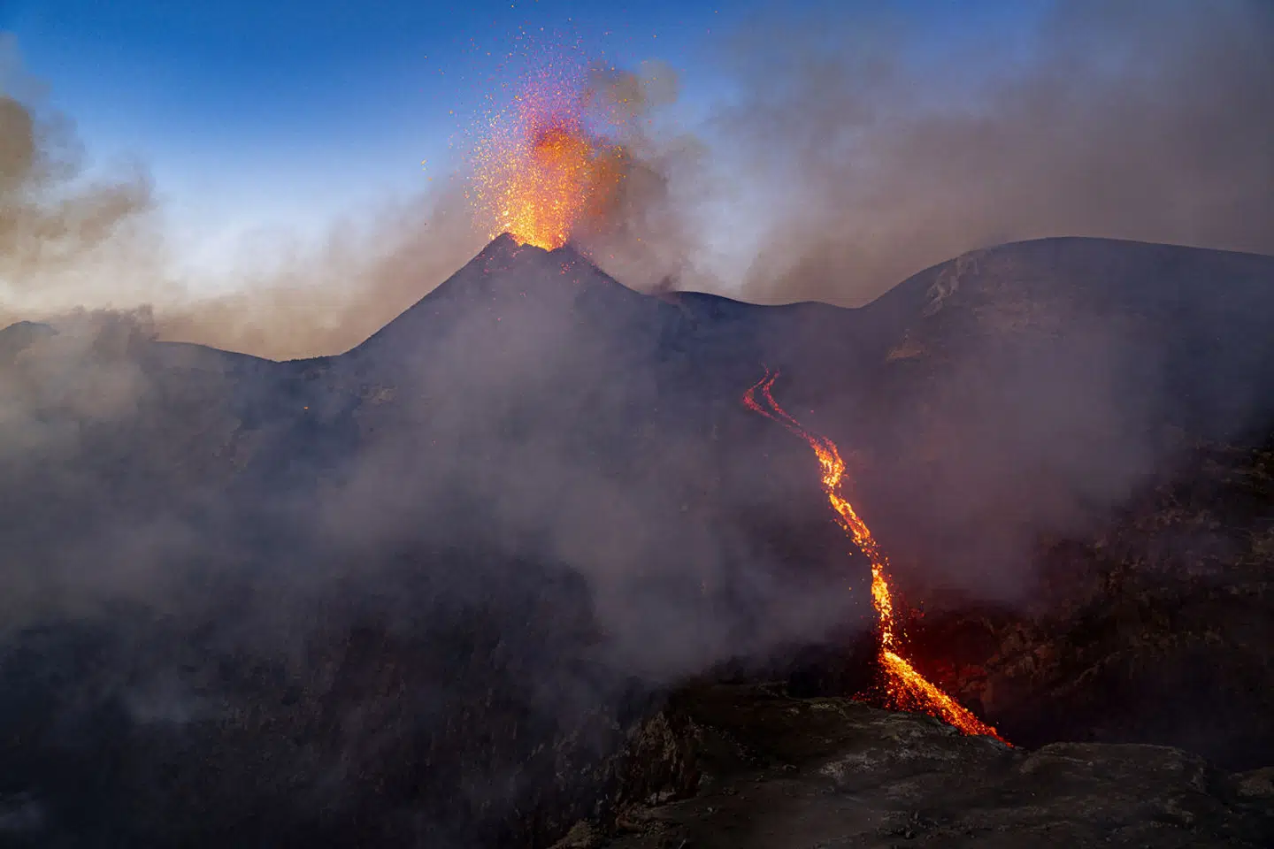Den italienske avis Corriere della Sera skrev tidligere på dagen, at udbruddet begyndte natten til mandag, men at det intensiveredes her til morgen med »drøn, der fik husene til at ryste« og »en høj og imponerende sky af vulkansk aske og pyroklastiske strømme«.