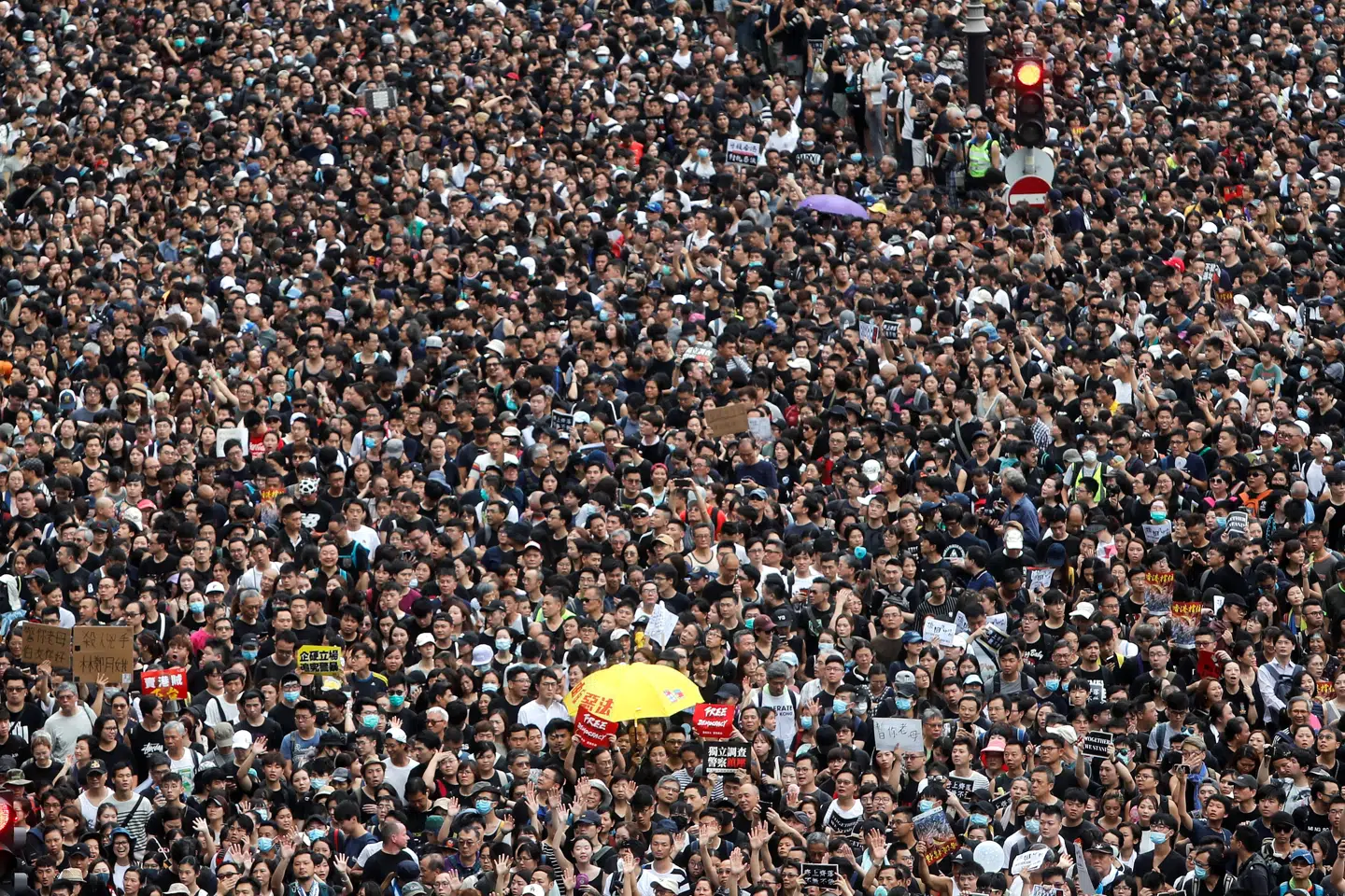 Det kom ellers efter en dag, der startede med en fredelig demonstration mod en lov, som vil gøre det muligt at udlevere borgere i Hongkong til Kina. Flere hundredtusinder mennesker deltog.