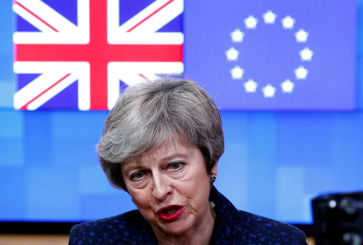 Den aftale, hendes regering indgik med Danmark og de øvrige EU-lande ved et ekstraordinært topmøde i november, er efterfølgende blevet forkastet ved en afstemning i det stærkt splittede britiske parlament.