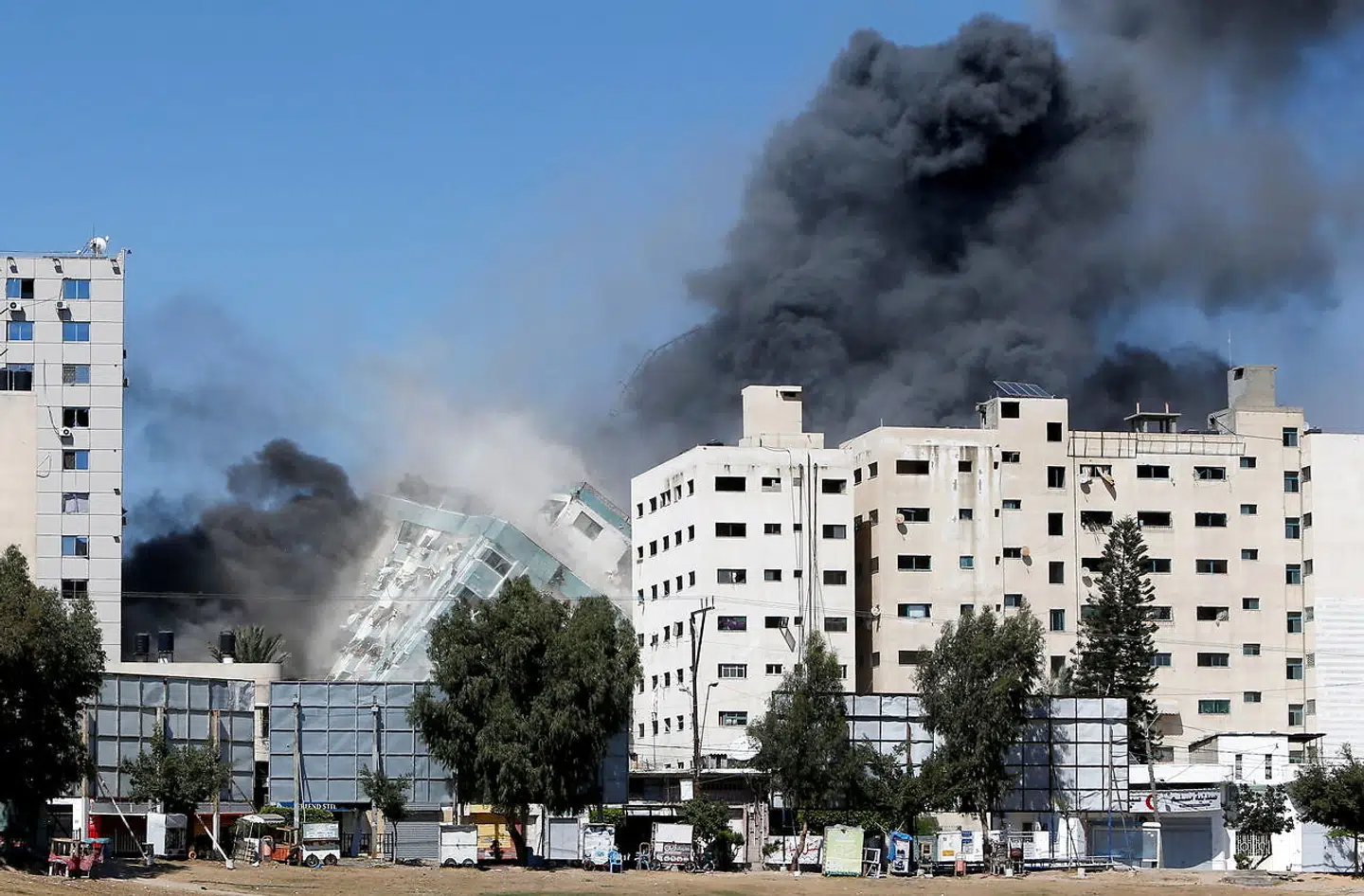 Det er store medier som nyhedsbureauet Associated Press og tv-netværket Al Jazeera, der havde kontorer i højhuset, og ifølge Al Jazeera fik de blot én time til at evakuere bygningen efter et telefonopkald fra den israelske hær.