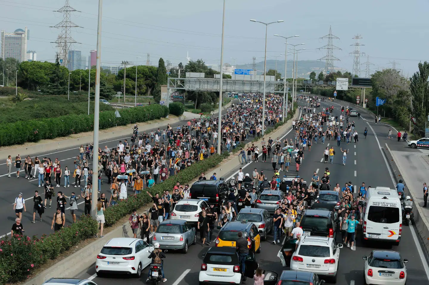 Tre demonstranter er desuden anholdt, oplyser spansk tv. Billeder fra Barcelona viser sammenstød mellem demonstranter og spansk politi.