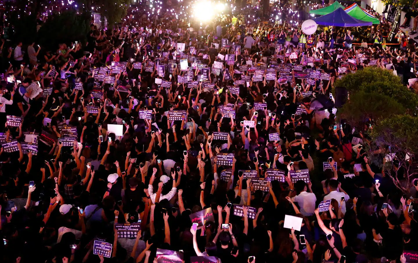 Demonstranterne trodsede et forbud mod at aktionere og Kinas tiltagende advarsler. Det er 13. weekend i træk, at tusinder er gået på gaden i protest mod styret.