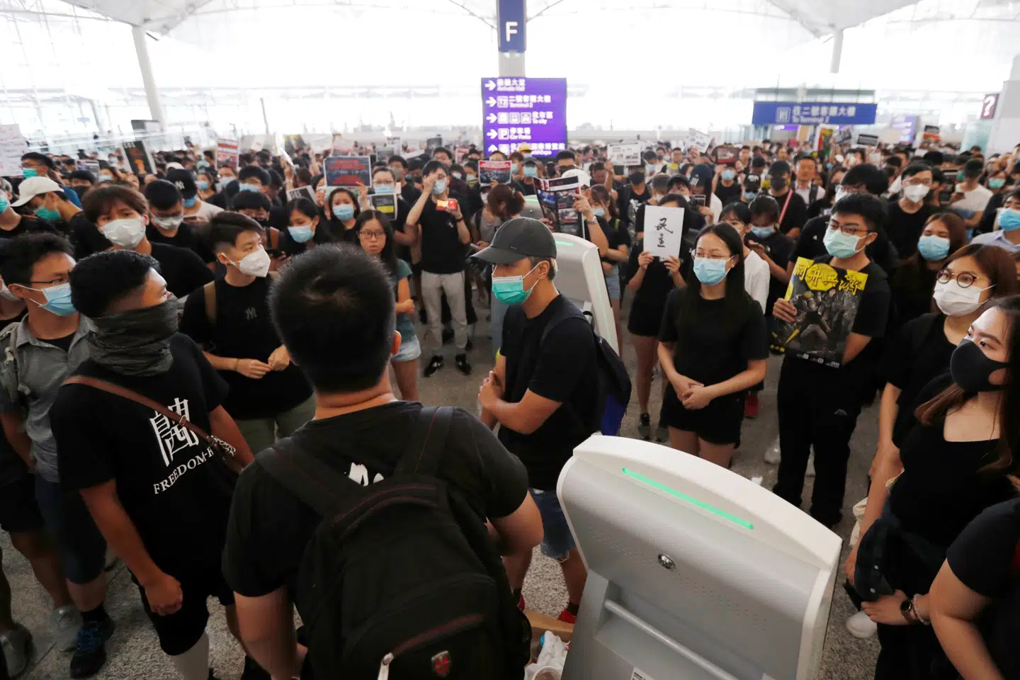 Hongkongs lufthavn aflyste tidligere på dagen alle fly resten af tirsdagen, efter at demonstranter brugte bagagevogne til at blokere adgangen til checkin-skrankerne og råbte slagord mod regeringen.