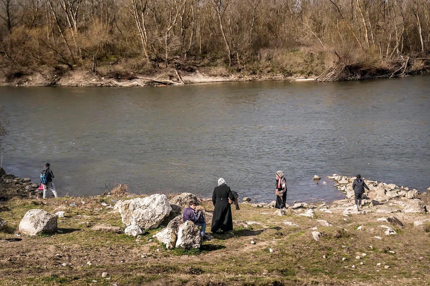 Flygtninge står i landsbyen Doyran ved floden Evros og kigger over på den græske side. Floden, som her danner grænse mellem Tyrkiet og Grækenland, er ikke særlig bred. Men strømmen er stærk, og på den græske side står politiet klar til at tilbageholde dem, som har held med at svømme eller sejle over. Flygtninge på stedet fortæller, at de er blevet placeret i Doyran af det tyrkiske politi.