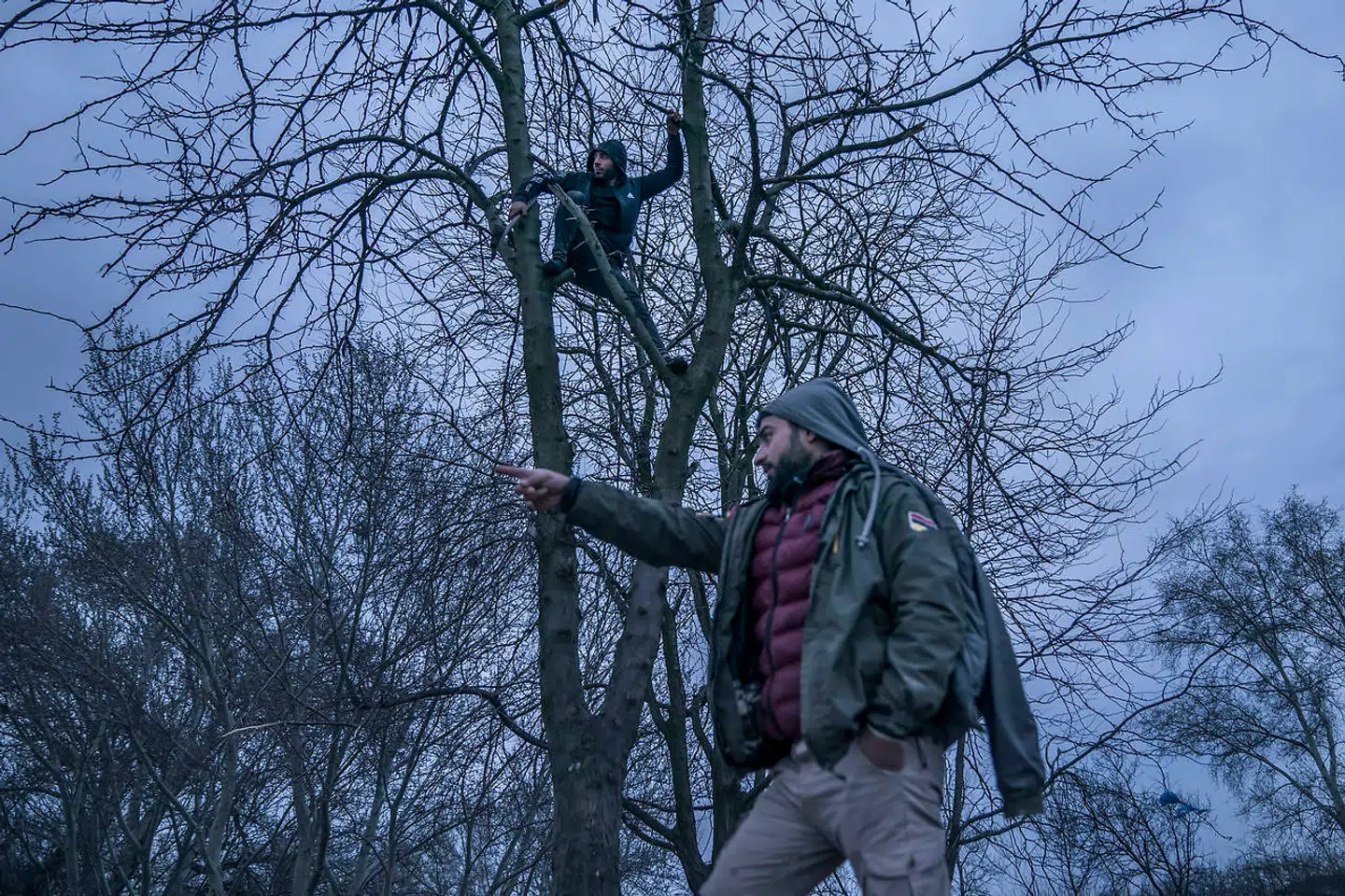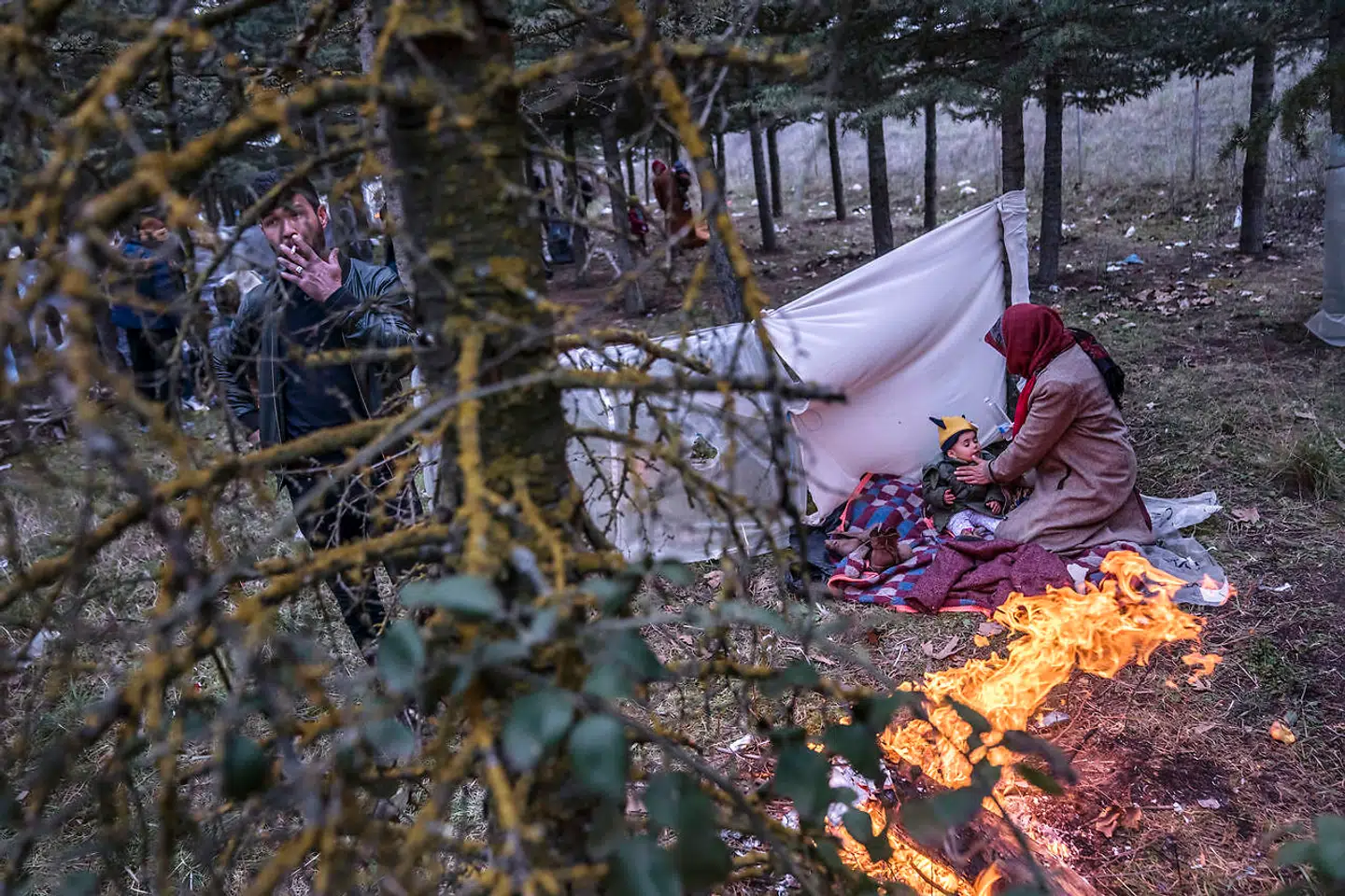 Mohammad fra Syrien er kravlet op i et træ med en økse for at samle grene til brænde. En del flygtninge og migranter har slået lejr i et område ved floden i byen Edirne ikke langt fra grænsen til Grækenland. Samme nat bliver lejren ryddet af tyrkisk politi.