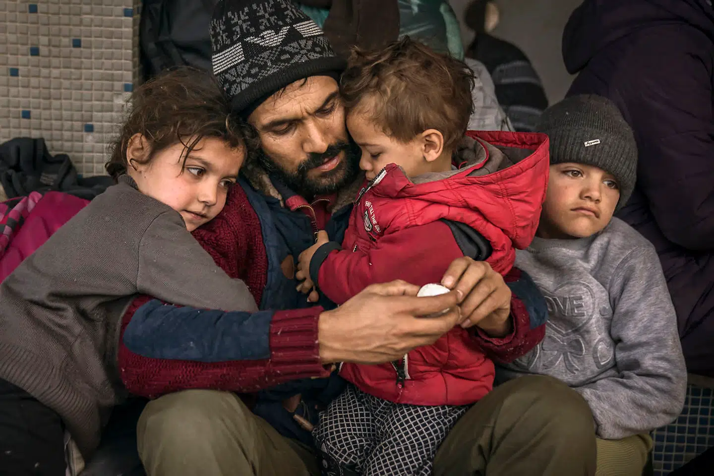 Gülistan fra Aghanistan sidder med tre af sine seks børn, Asmaa, Mubares og Mohammad, i en forladt bygning i byen Edirne. De har været fire år i Tyrkiet. Senere på dagen bliver huset spærret af, så de ikke kan komme til at overnatte der mere.