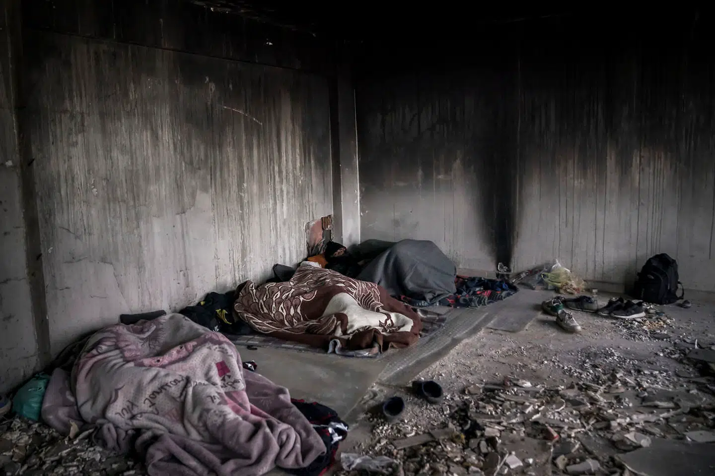 En gruppe afghanere er ved at pakke sammen efter at have overnattet i en forladt og ufærdig bygning. Senere på dagen bliver bygningen spærret af, så de ikke kan komme til at overnatte der mere.