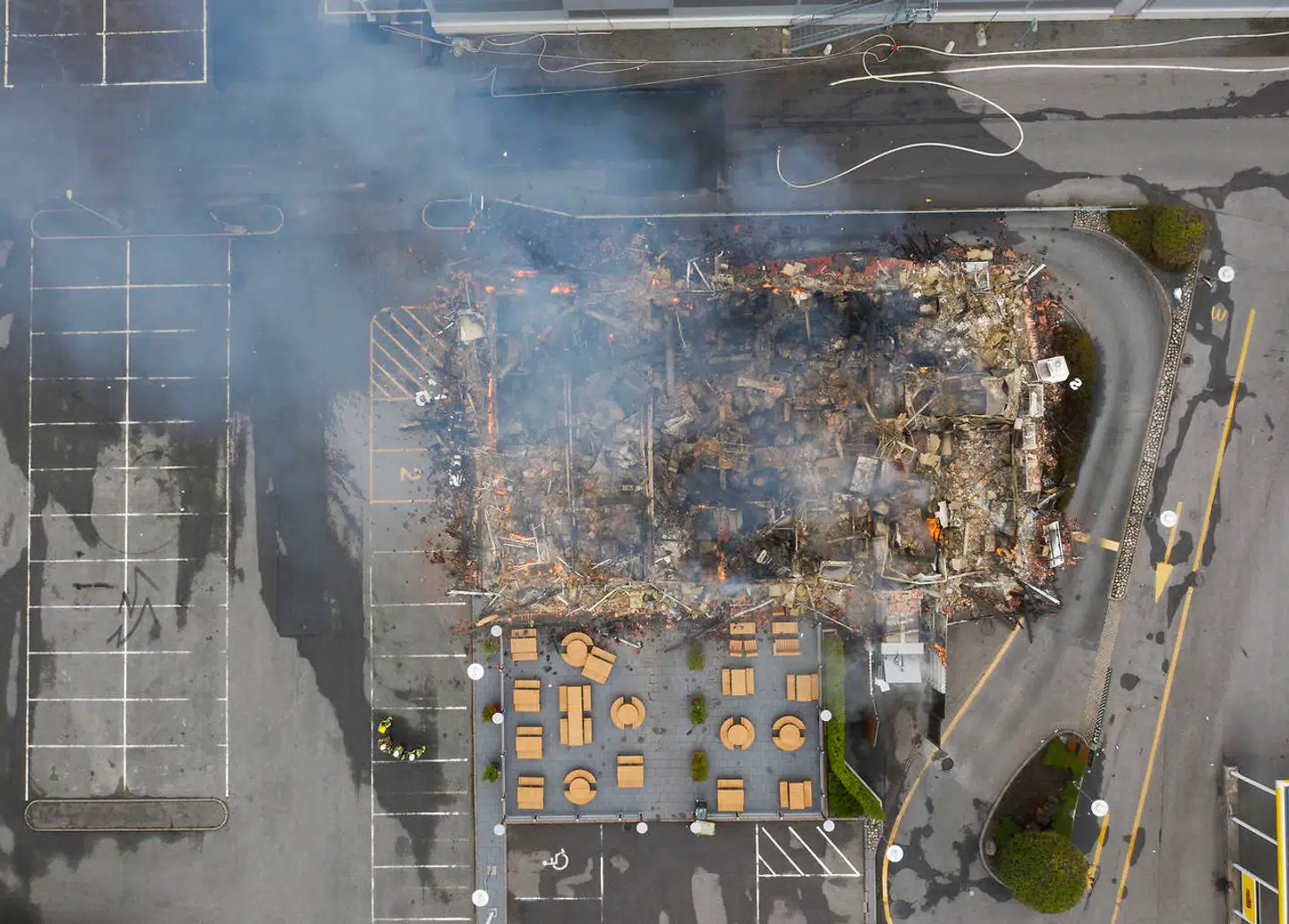 Heldigvis lukkede restauranten ved midnat og var derfor med al sandsynlighed tom, da branden brød ud.