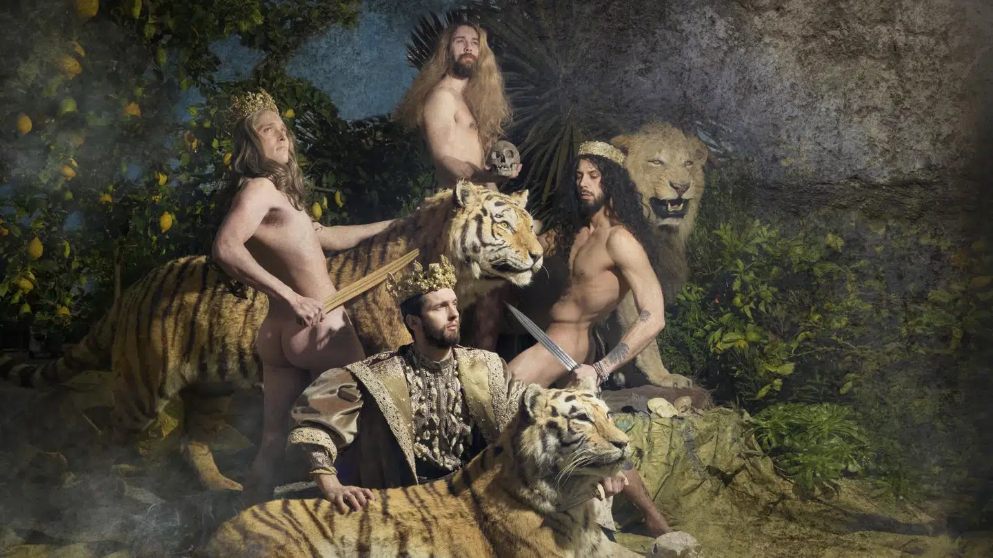 De to guder er på vej ud for at fange midgårdsormen – og jeg er på vej ind i Jim Lyngvilds verden. En verden af smukke unge halvnøgne mennesker, en verden af glimmer, pels, silke og selvopdigtet historiefortælling.