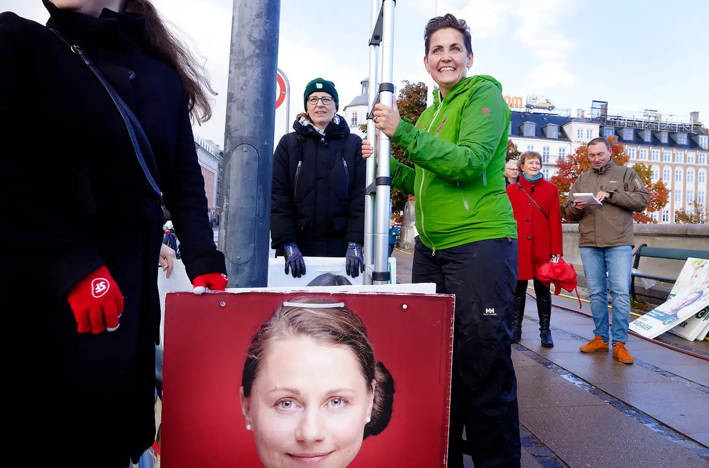 Ovenover er der en SF-kandidat, hvis slagord er »Stem på en sygeplejerske«. Det er en god måde at byde ind i valgkampen på – for han blander flere forskellige dagsordener ind. Der er dels konflikten og dels det faktum, at sygeplejerskerne hele tiden bliver nævnt som eksempel på dem, der sammen med politifolk skal have mulighed for at bo i København.«