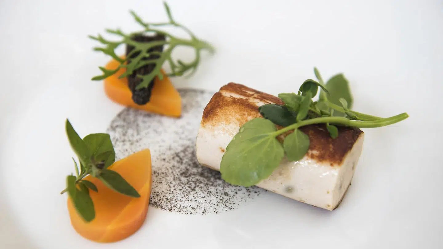 Mesterstykket stod havtasken for. Ikke den mest instagramvenlige ret med sin brune løgpuré, der mildest talt lignede noget, hunden havde efterladt, men med en guddommelig dyb smag. Taskefileten selv igen præcis i tilberedning og med masser af smag.