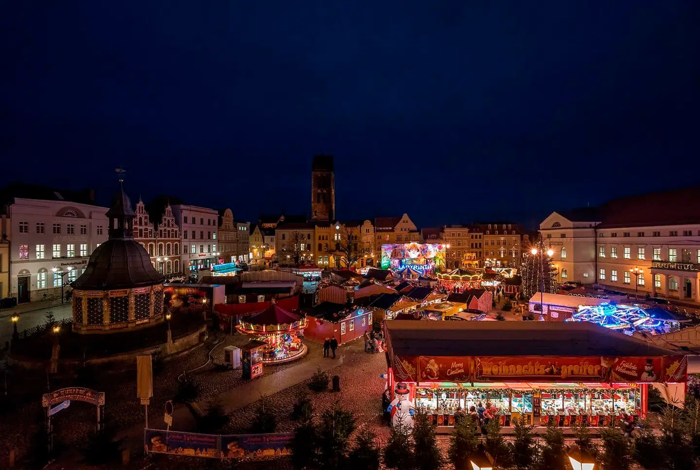Med sine 200.000 indbyggere er Rostock en af de større byer i det nordtyske og et godt valg, hvis man vil have lidt storbystemning på sin tur i det nordtyske julelandskab. Rostocks julemarked har sit bankende hjerte på det store torv Neuer Markt, hvor boder og forlystelser konkurrerer om opmærksomheden. Ud til Neuer Markt ligger en række gavlhuse, byens største kirke, Marienkirche, og det historiske rådhus.