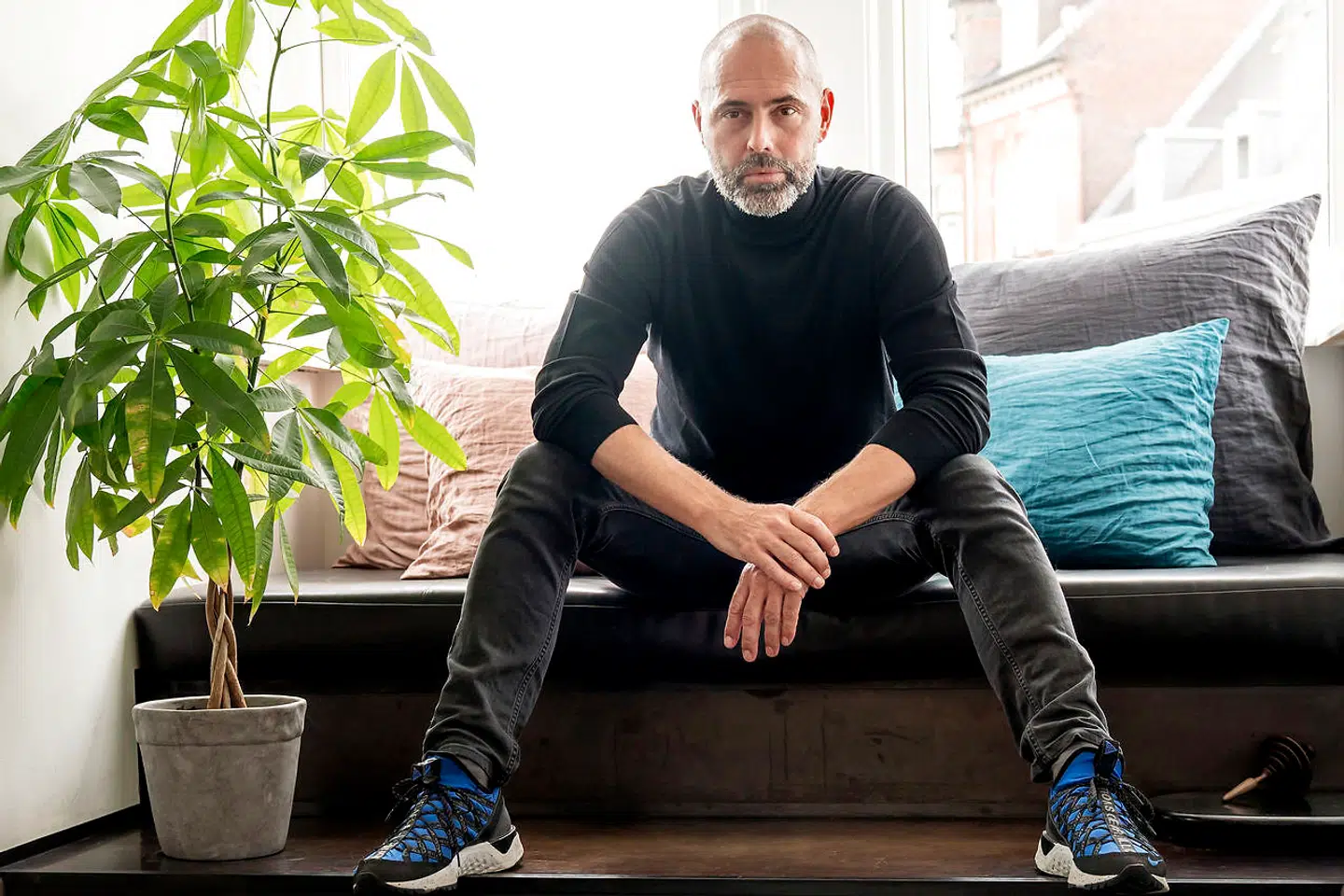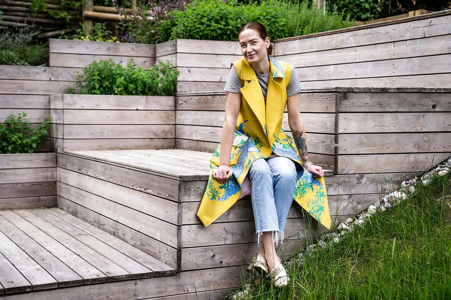»Jeg startede min virksomhed for tre år siden, og de her sko er fra den første kollektion, jeg lavede. Dem ville jeg skynde mig at redde, hvis huset stod i flammer. Jeg har analyseret kvinders forbrugsmønster og vaner i forhold til sko, og min tese er, at hvis kvinder har otte par sko, er de dækket ind. De skal både have flade, fornuftige og klassiske sko. Men der skal også være en »joker« i samlingen. Det er de her. De er lavet i genbrugt denim, så der findes ikke to par, der er ens. De kan ikke genskabes. De er siden blevet nogle af de mest populære sko, jeg har lavet, og de er mine personlige yndlingssko. Mine fødder er blevet lidt større, siden jeg fødte min søn, Aston, for fem måneder siden, så jeg glæder mig til, at jeg kan passe dem igen. Ellers må jeg give dem videre til min søster. Men jeg slipper dem ikke af syne.«