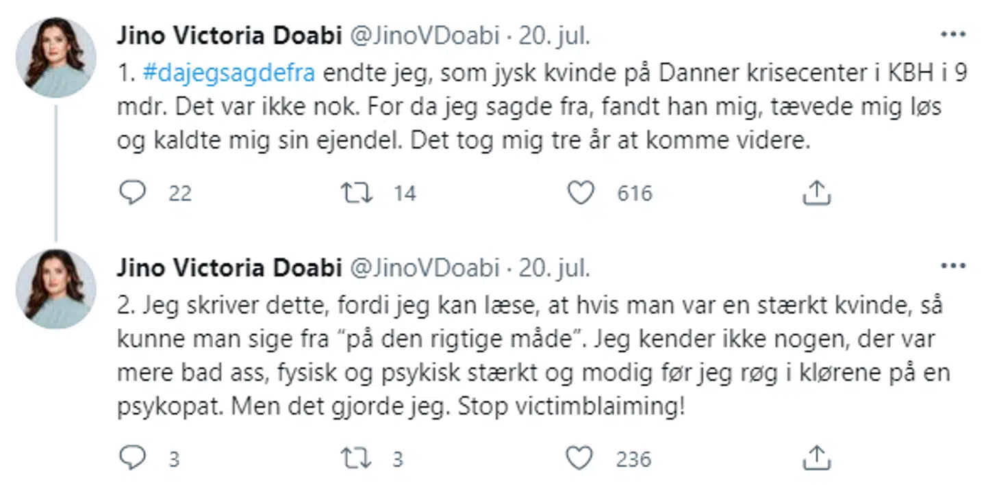 Det er mange år siden, det skete, men tirsdag valgte Jino Victoria Doabi og hundredvis af andre kvinder at dele deres fortællinger på Twitter.
