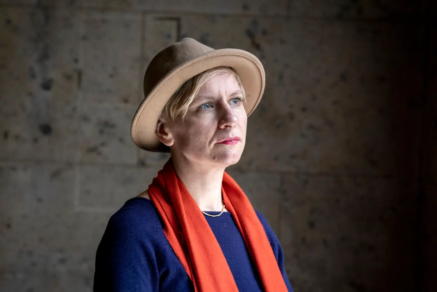 Hun virrede med hovedet, iført stor hat, vist udført i beige filt, og stort rødt tørklæde, og sagde så de ord, ingen i kunstmiljøet siden glemmer: