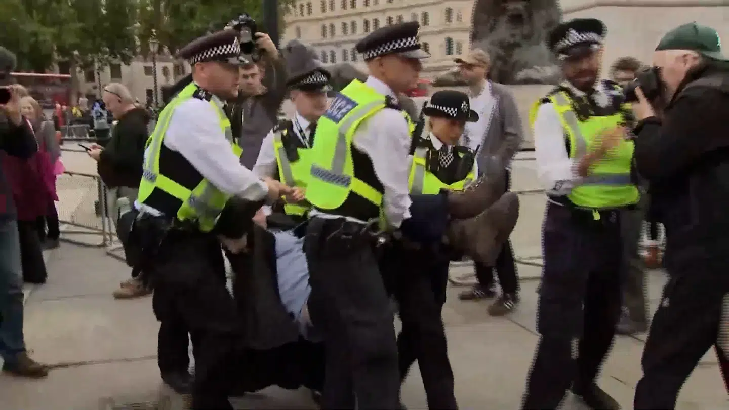 Robert Del Naja, frontmanden i det britiske band Massive Attack, er sammen med flere end 500 andre blevet anholdt i forbindelse med en demonstration på Trafalgar Square i London i weekenden. Det skriver Sky News.
