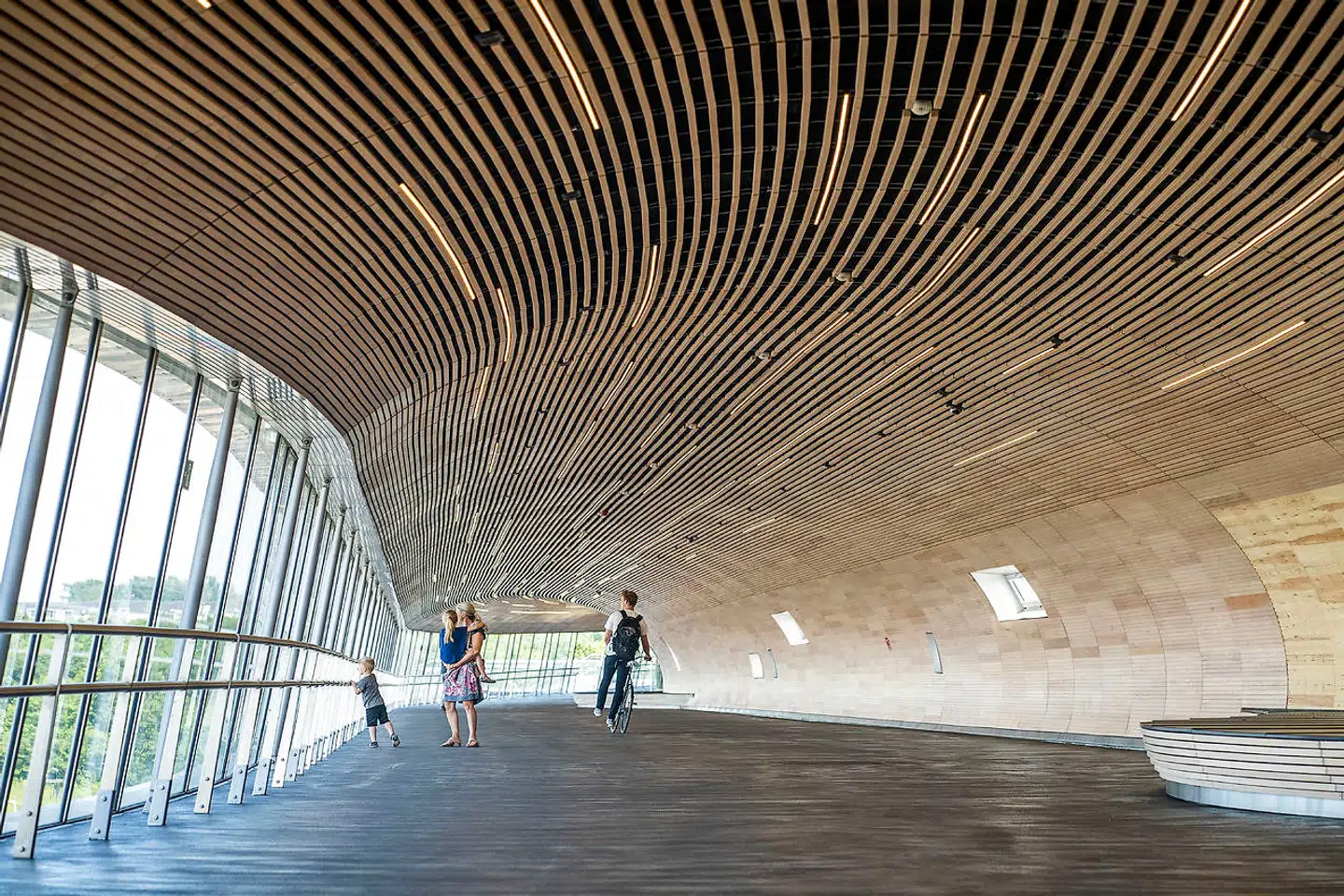 Den 225 meter lange gangbro forbinder parkeringspladserne på begge sider af sporene med S-togene og højhastighedsbanen, der kører mellem København og Ringsted.